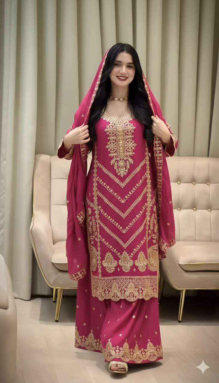 EID SPECIAL SEQUENCE EMBROIDERY ON SILK FABRIC TOP AND PLAZZO WITH DUPATTA