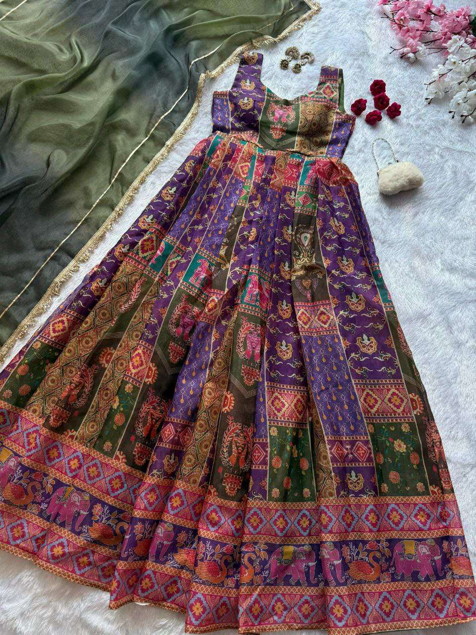 | Catalogue: | SHRI BALAJI DV 25472 Ready to wear Digital printed Jimmy organza silk party wear flarred suit |
