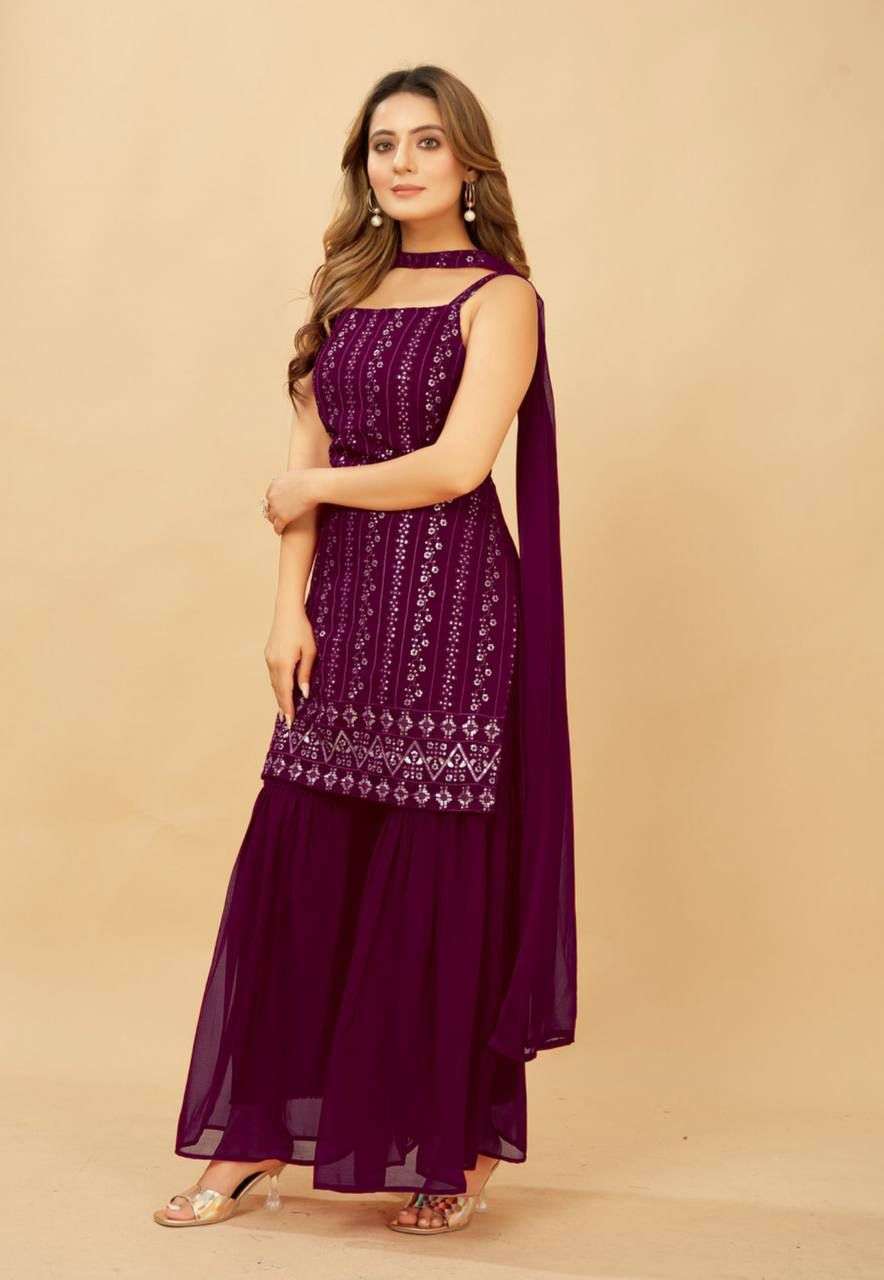 Description:Fox gorgette with sequenc embroidery work fancy and latest look With Attractive Moti less and duppta attached wear this beautiful fitting and rich fabric feel