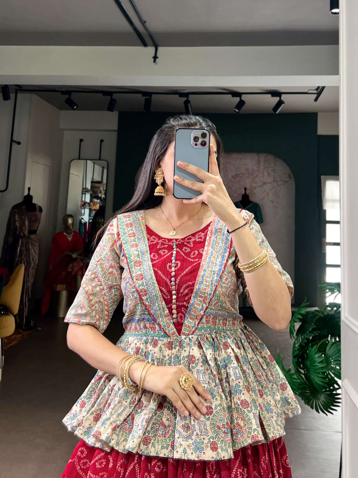 Lehenga Work : Fusion Print Of Madhubani And Bandhej