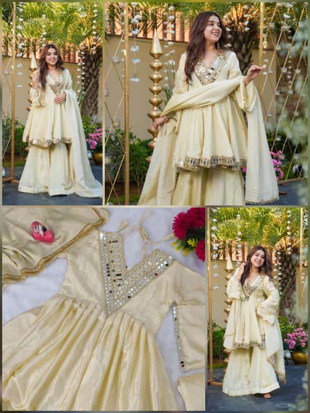 Fabric: Soft Chinon + Beautiful Coding & Real Mirror Work On Neck