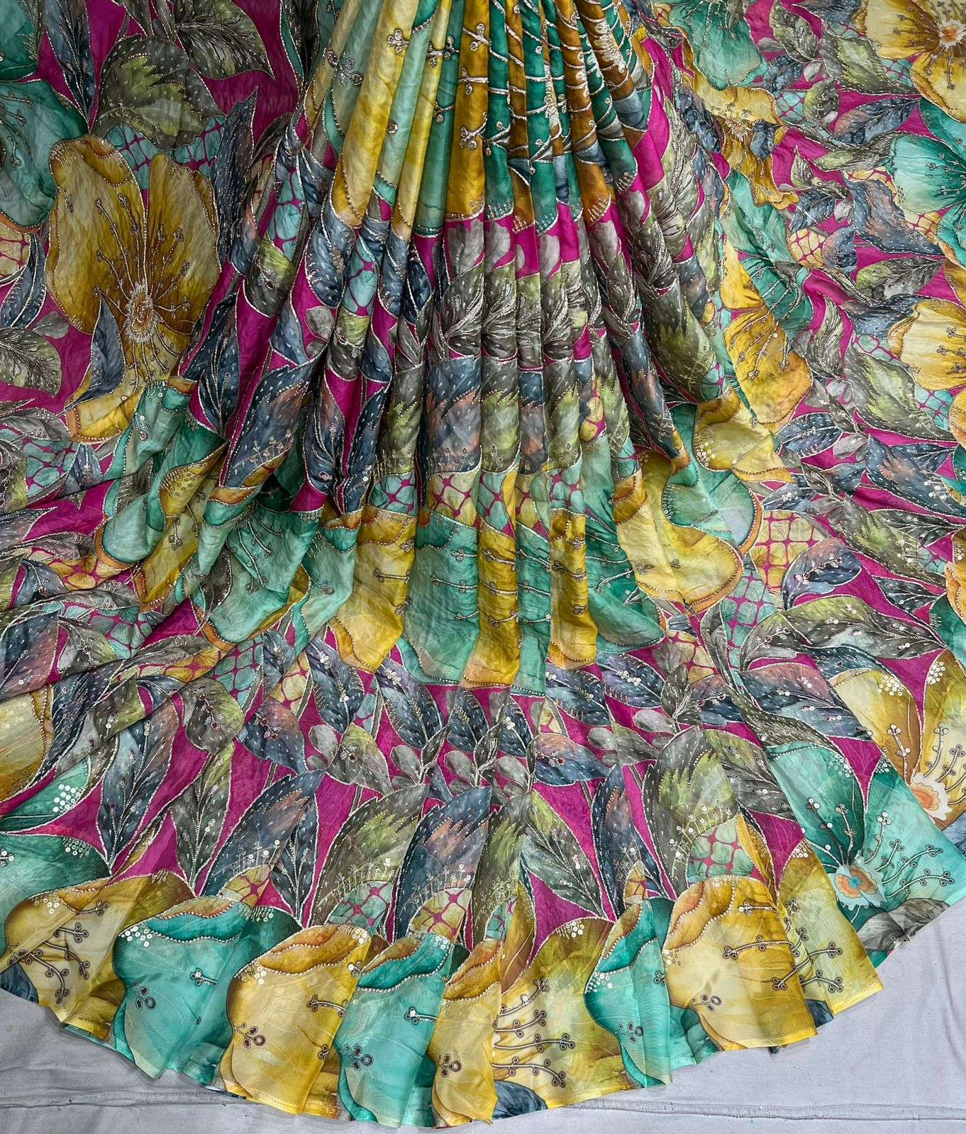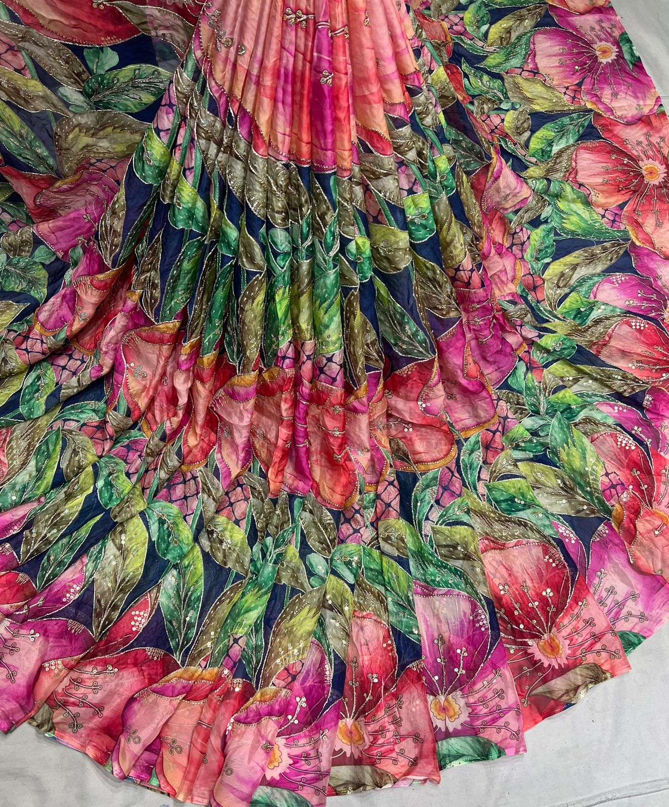 | Catalogue: | Shri Balaji Emporium 1243 Position Print Embroidery Work Organza Designer Fabric |