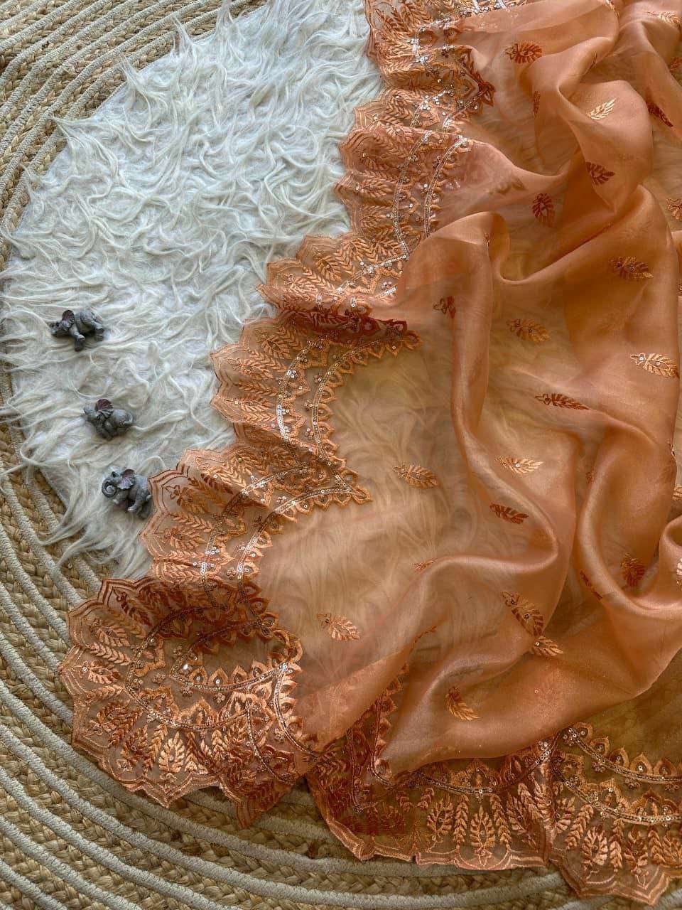 Presenting The pure Organza silk Sare with beautiful sequins work in all over saree with beautiful cutwork border ever green design and color