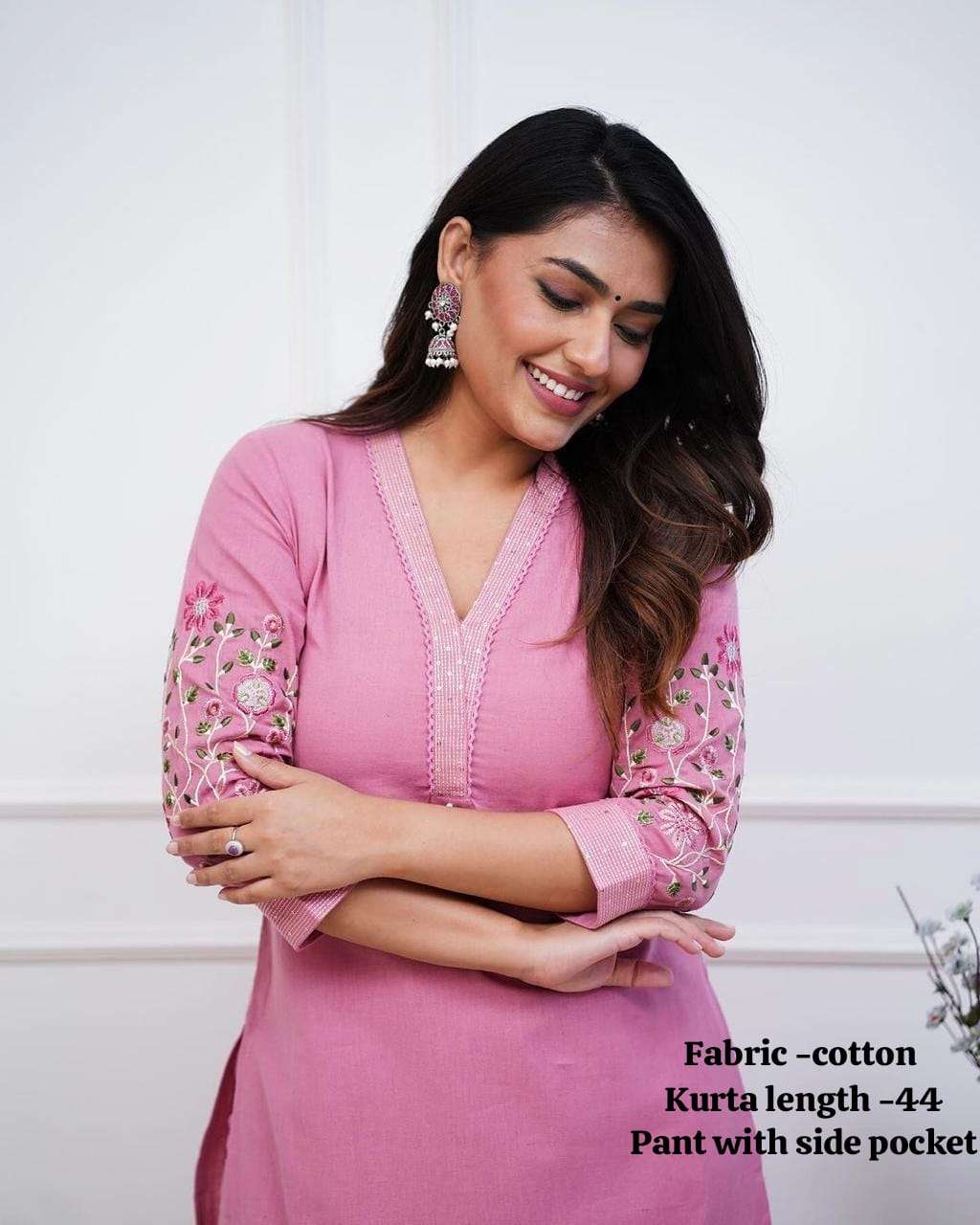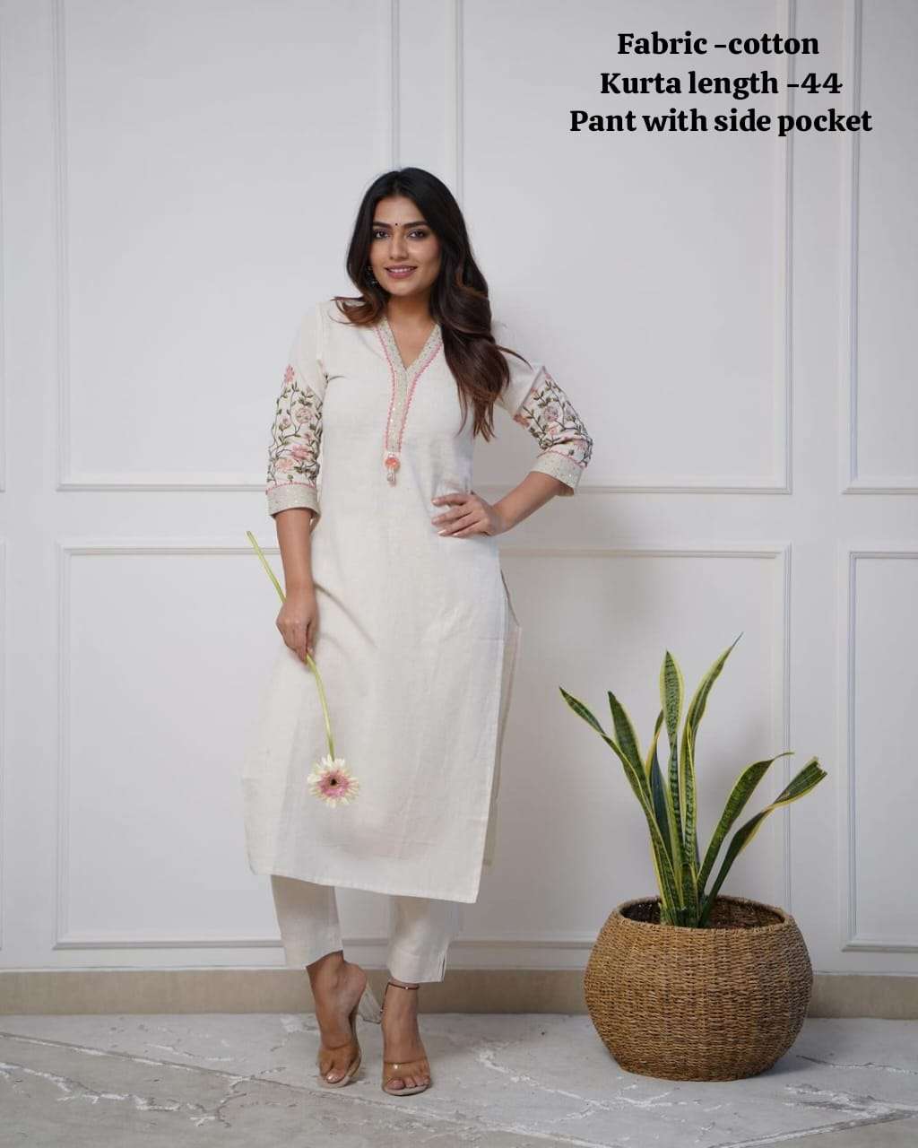 Introducing the latest addition to our fashion collection the strength kurta Style made from high-quality cotton, embellished with exquisite sequence & thread embroidery work on neck line and paired with matching pant.