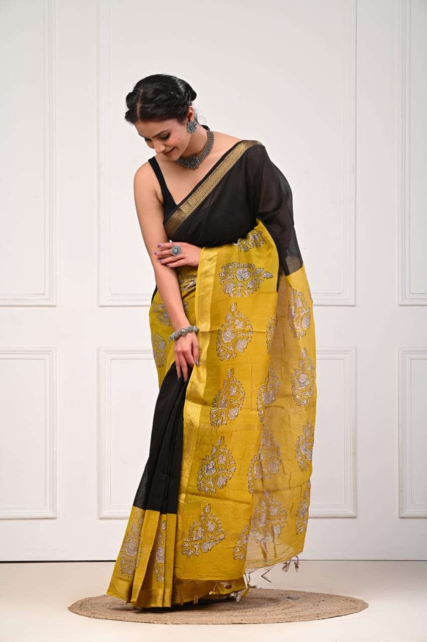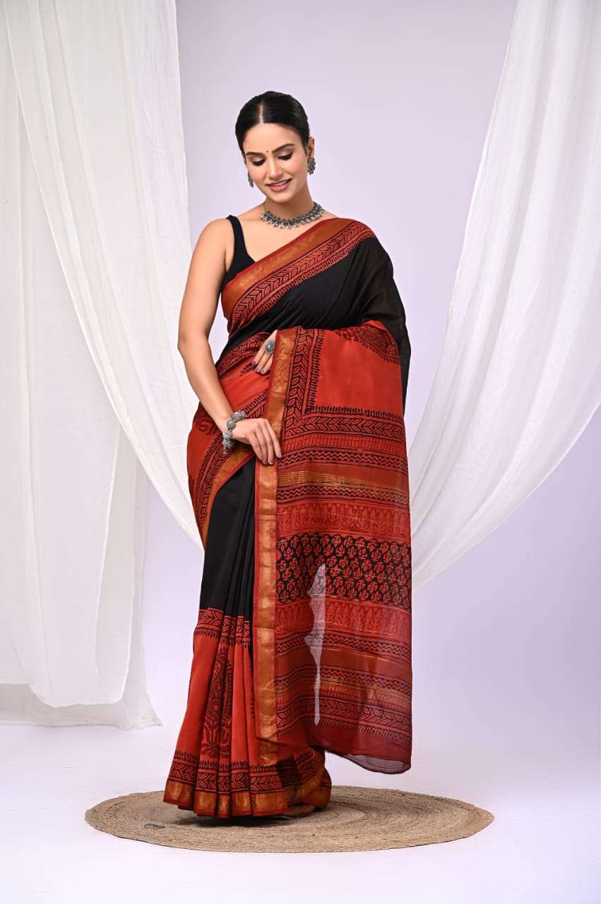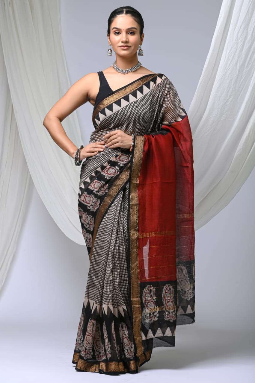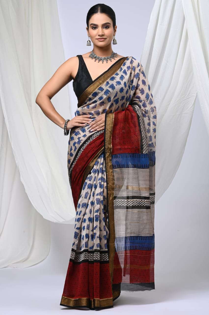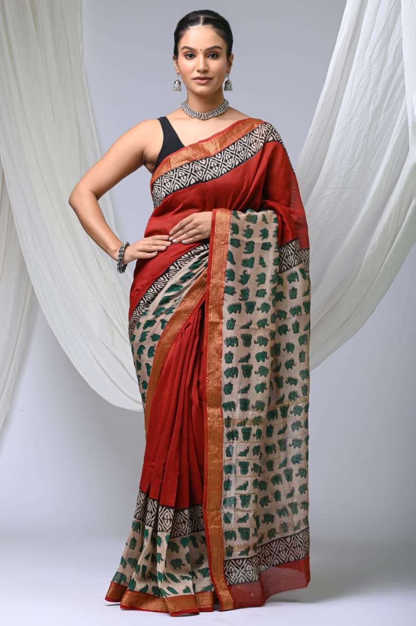 | Catalogue: | Shri Balaji Emporium 21353 Presents Exclusive Hand block printed Maheswari silk saree collection |