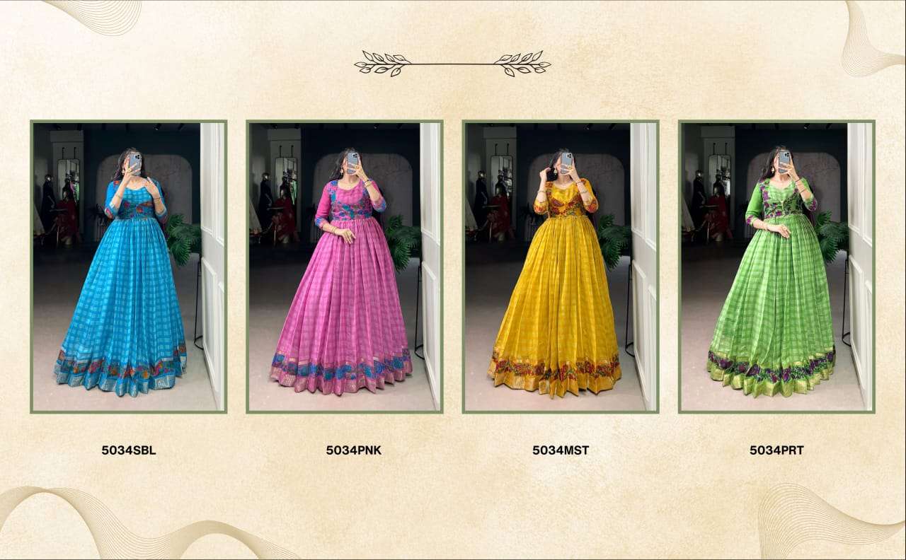 | Catalogue: | Shri Balaji Emporium 5034 COLOURS Polyester Viscose Chanderi Gown |
