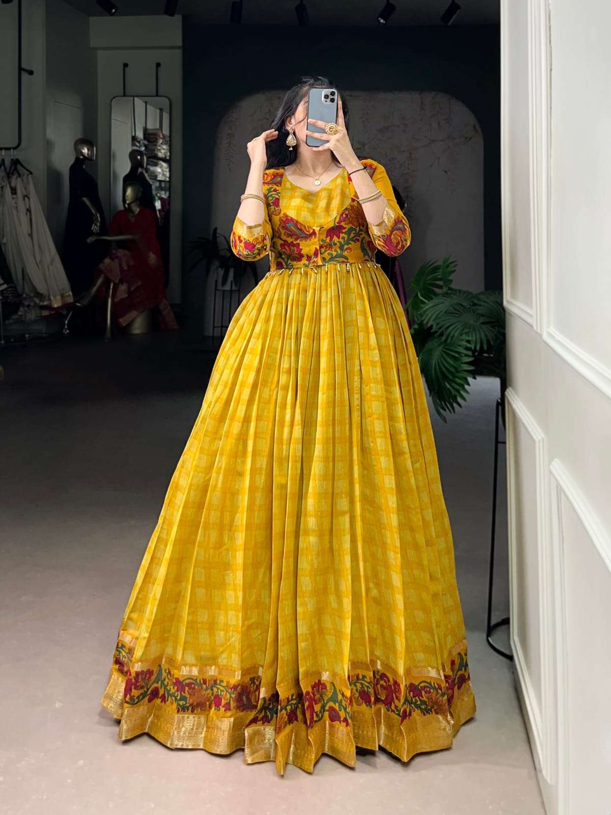 Gown Work : Printed With Zari Weaving Work