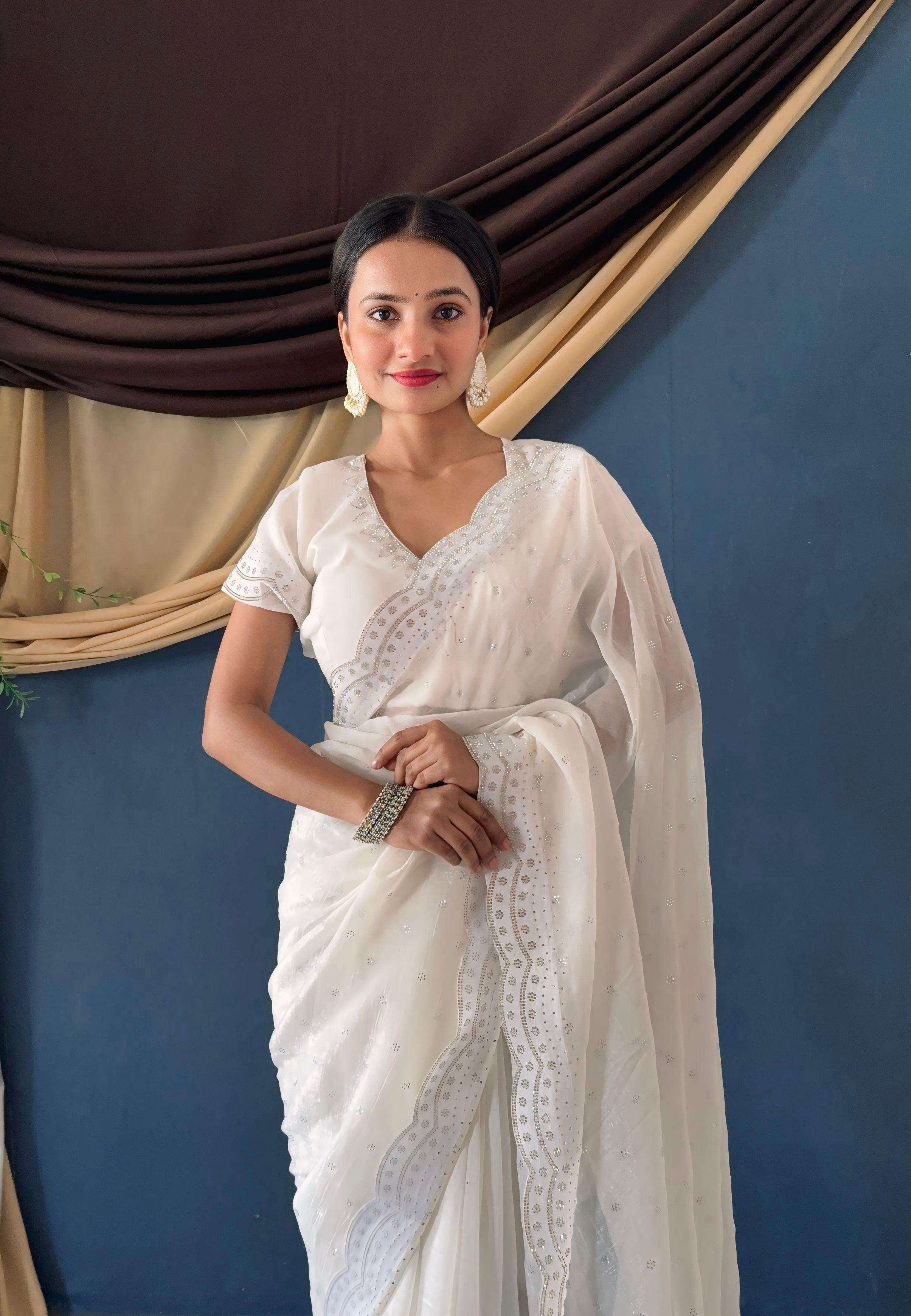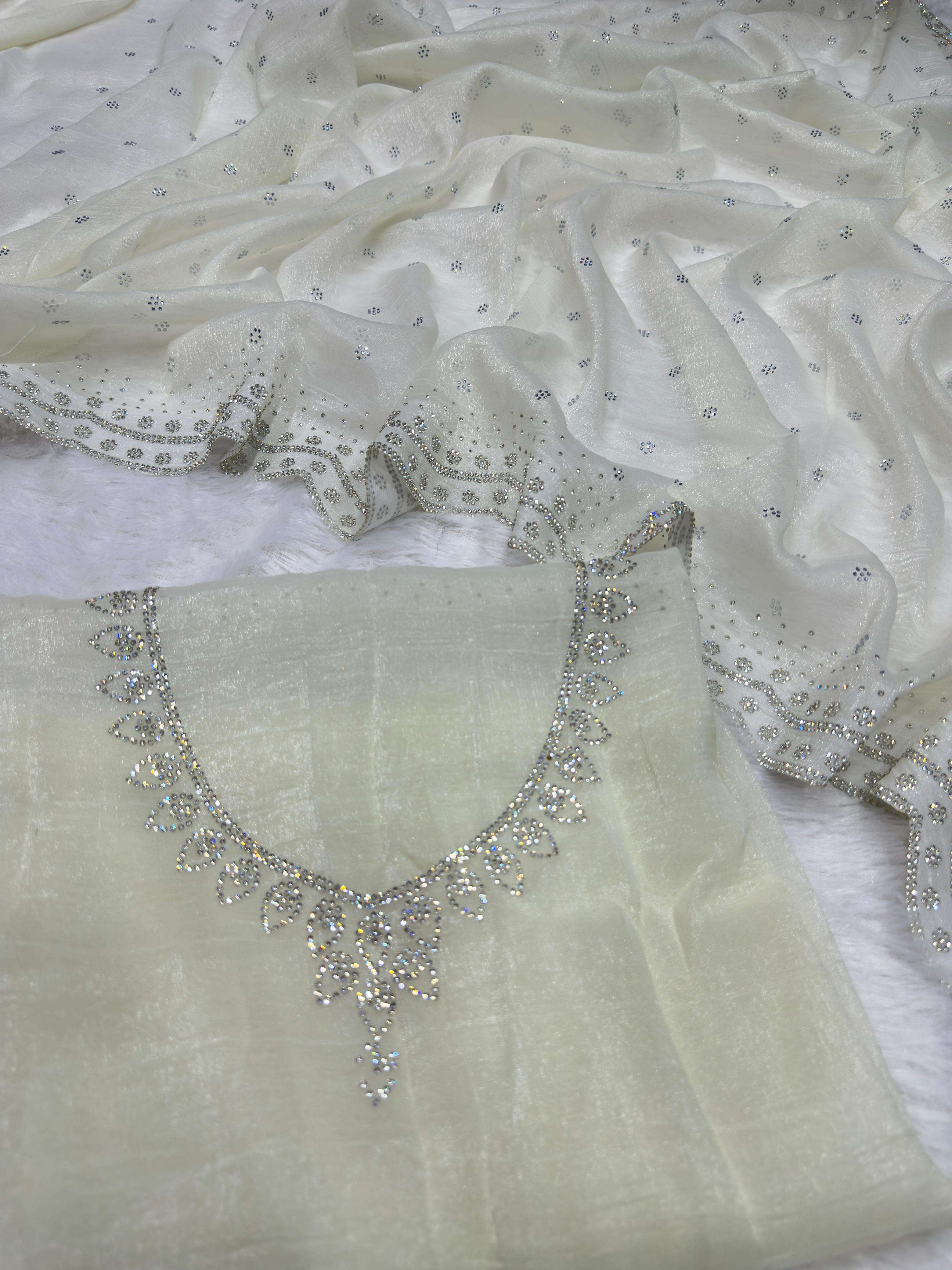 FABRIC:CRUNCHY WITH DESIGNER ZARKHAN DIAMOND WORK SAREE