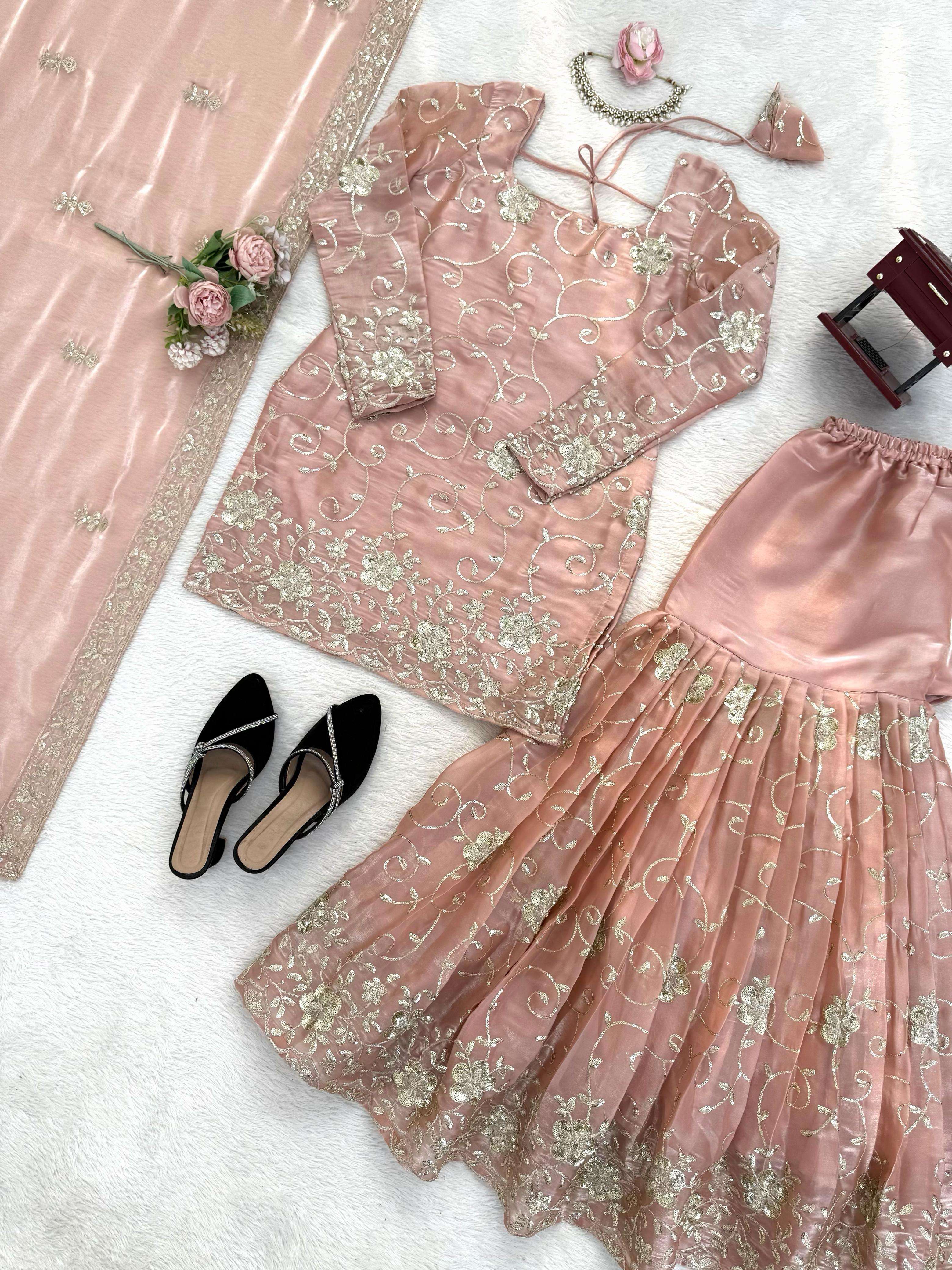 | Work : | thread embroidery,sequin embroidery |
