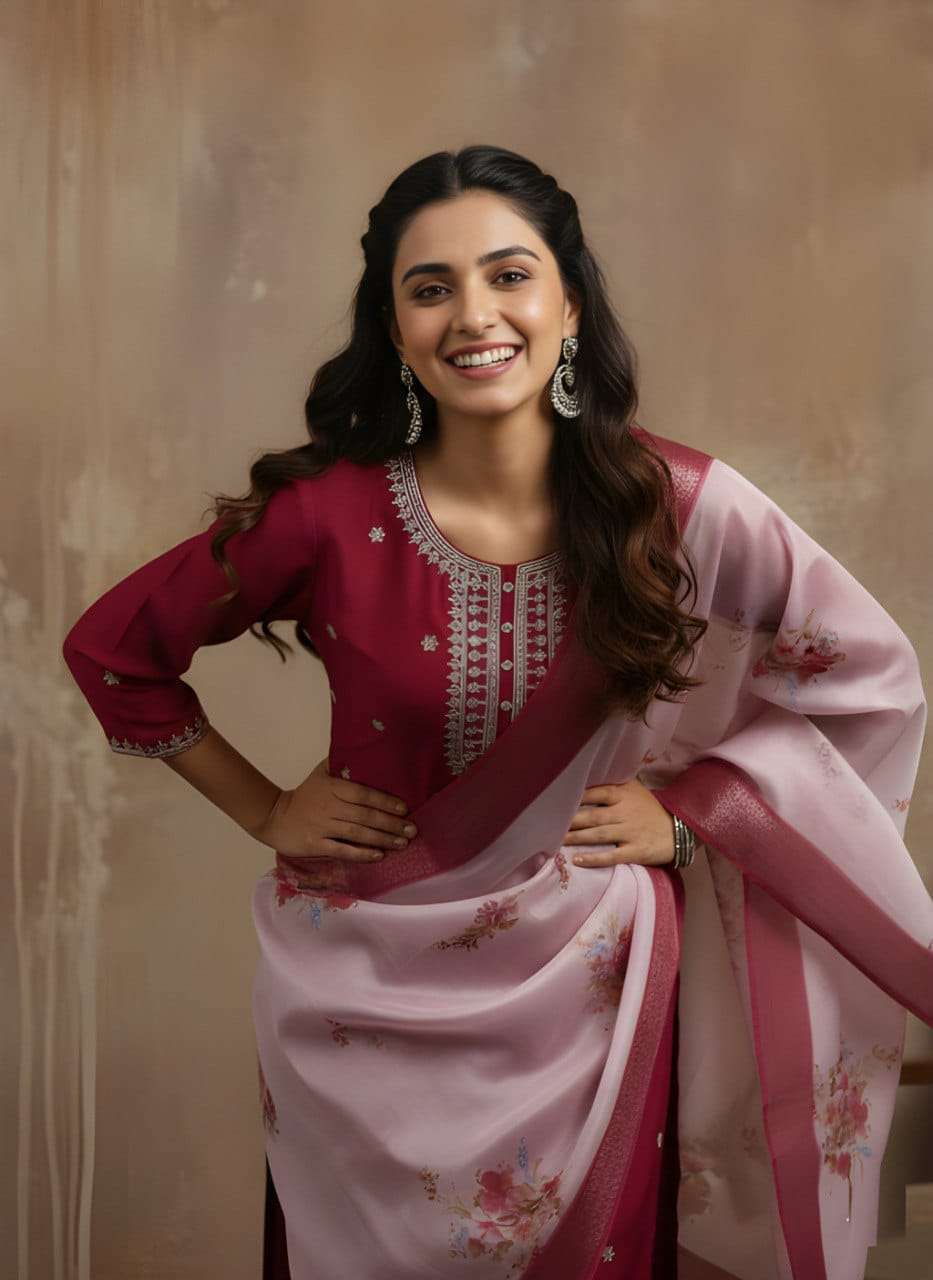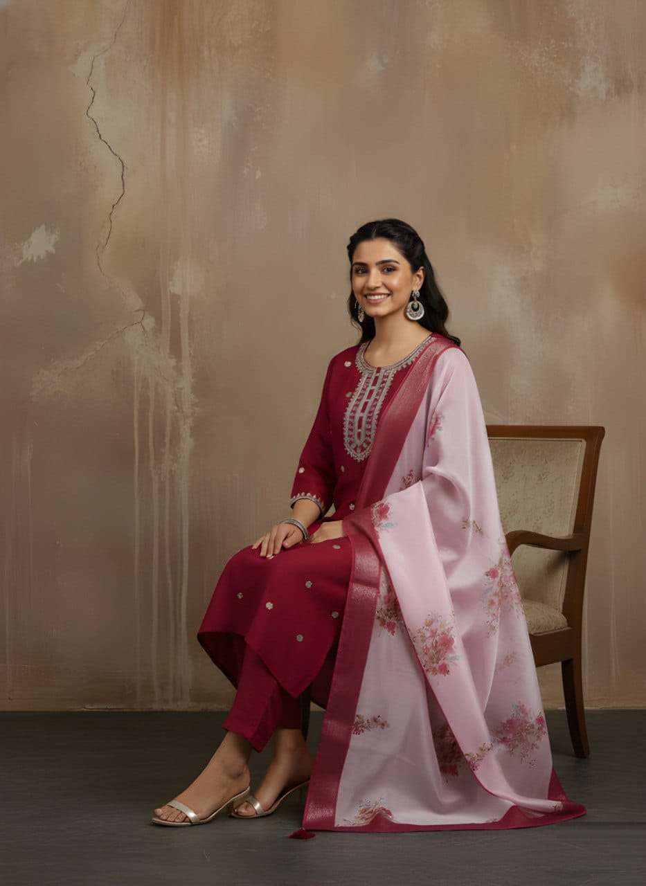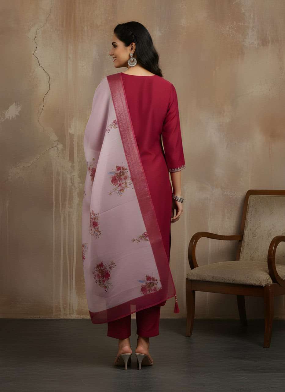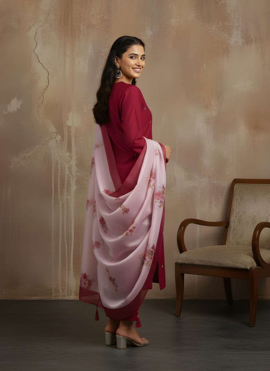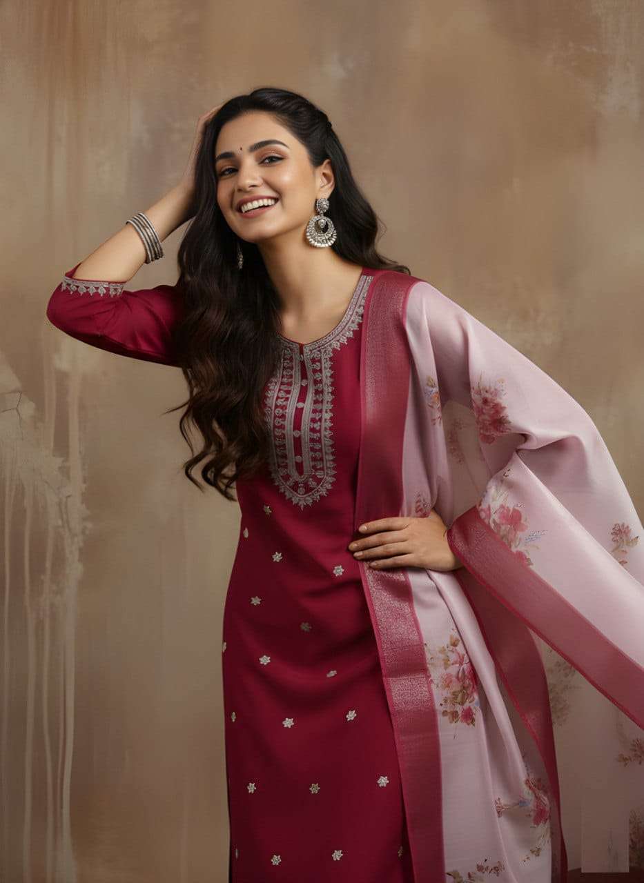 Product Name : Maroon embroidered Kurta Pant with Dupatta suit