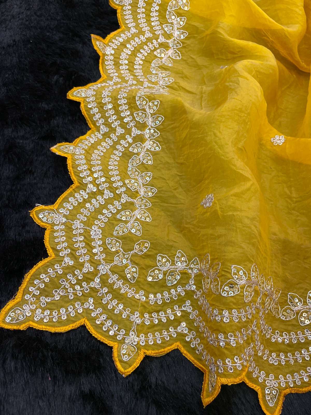 SAREES FABRICS:-PURE SOFT GOLD CRUSH MULTI THREAD EMBROIDERY WITH SEQUENCE WORK