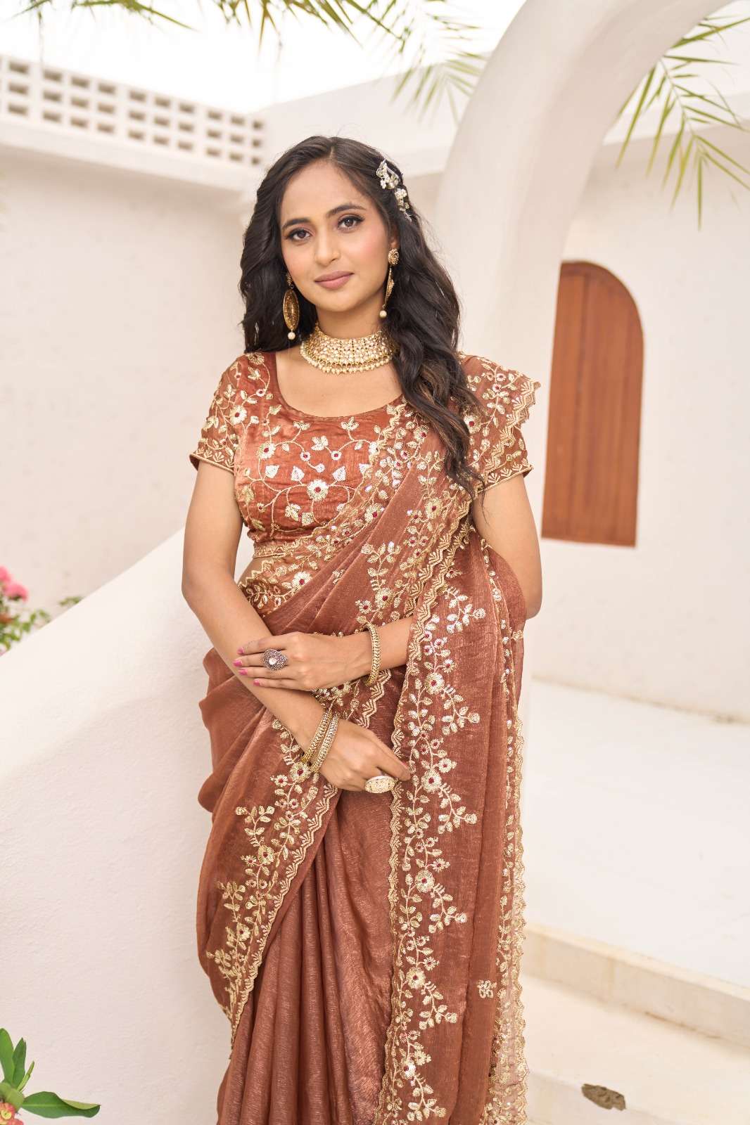 SAREES :FRANDY SIFFON FABRIC WITH EMBROIDERY SINQUNCE CUT WORK LACE