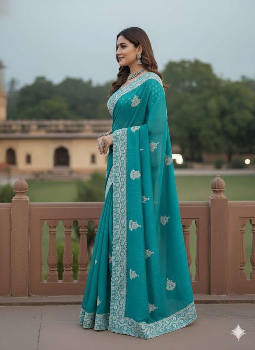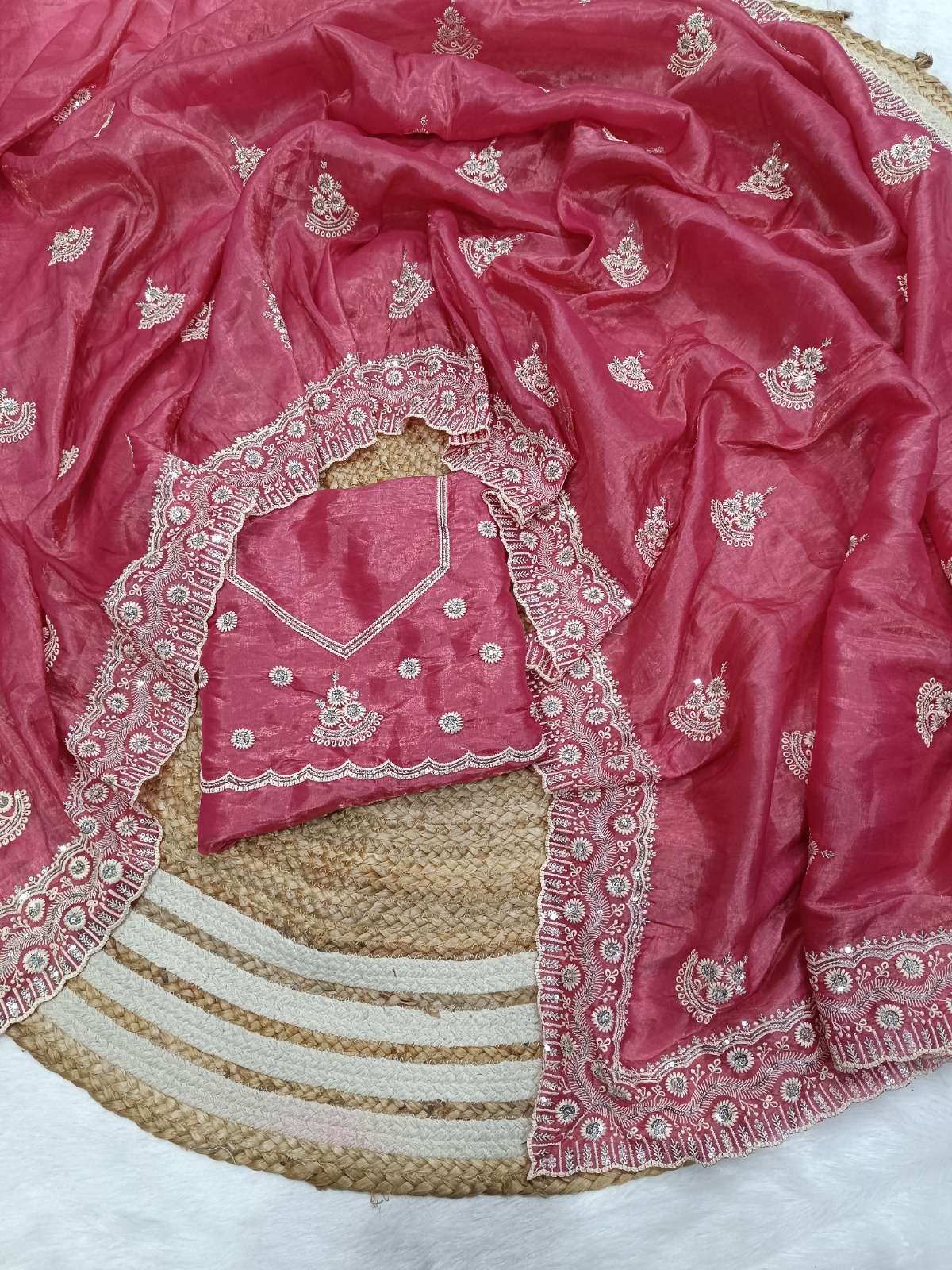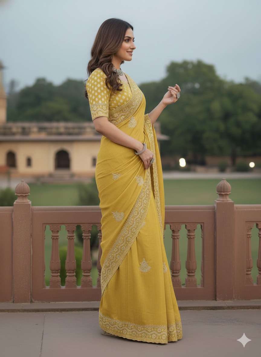 SAREES FABRICS:-Pure Soft gold crush cotton thread embroidery with sequence work