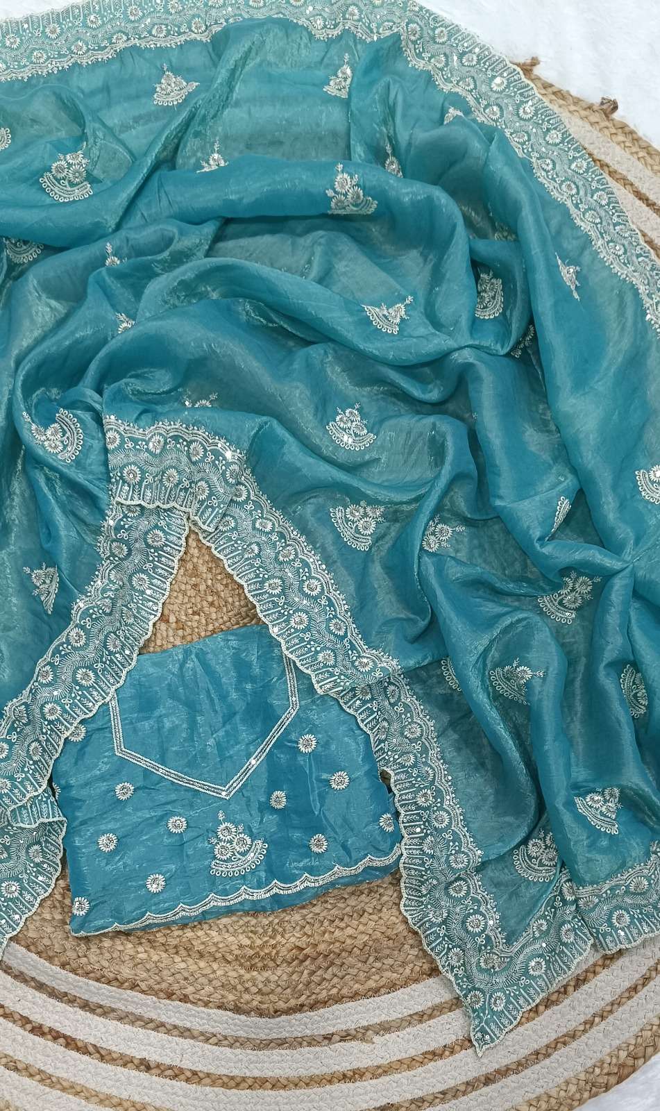 *Blouse :- Pure Soft gold crush cotton thread embroidery with sequence work