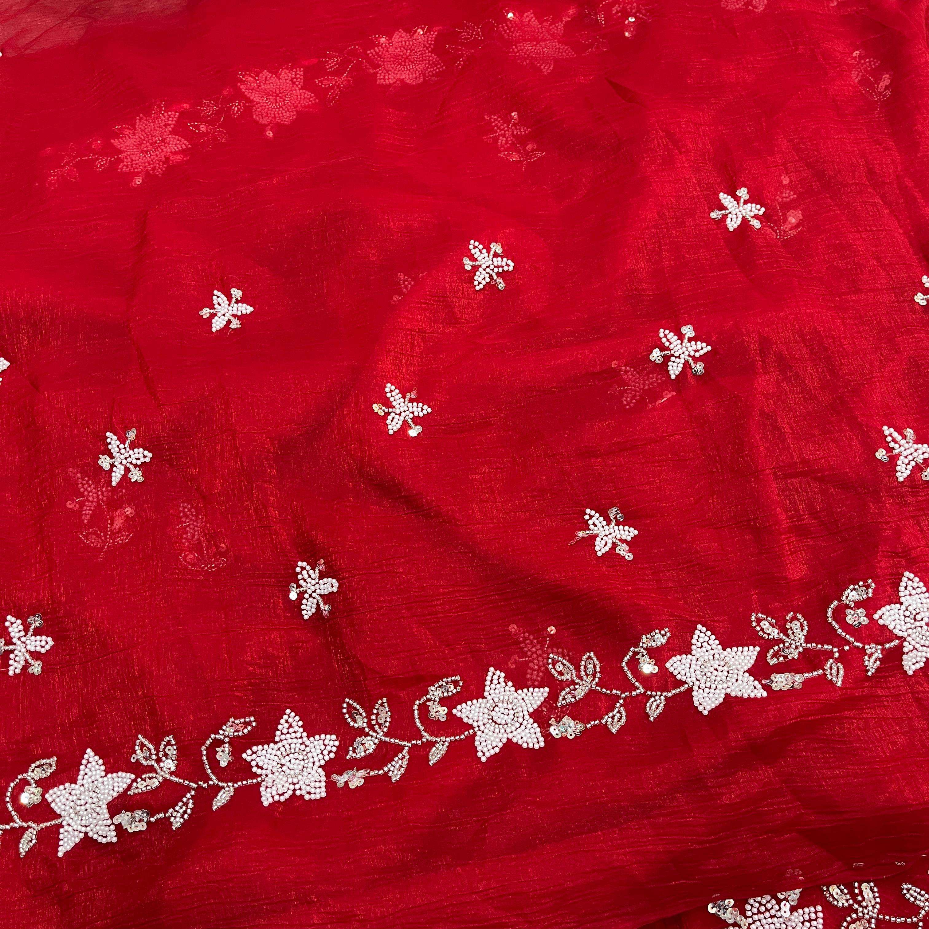 Saree : Premium Crunchy Crush with Cutdana And Moti with sequins work