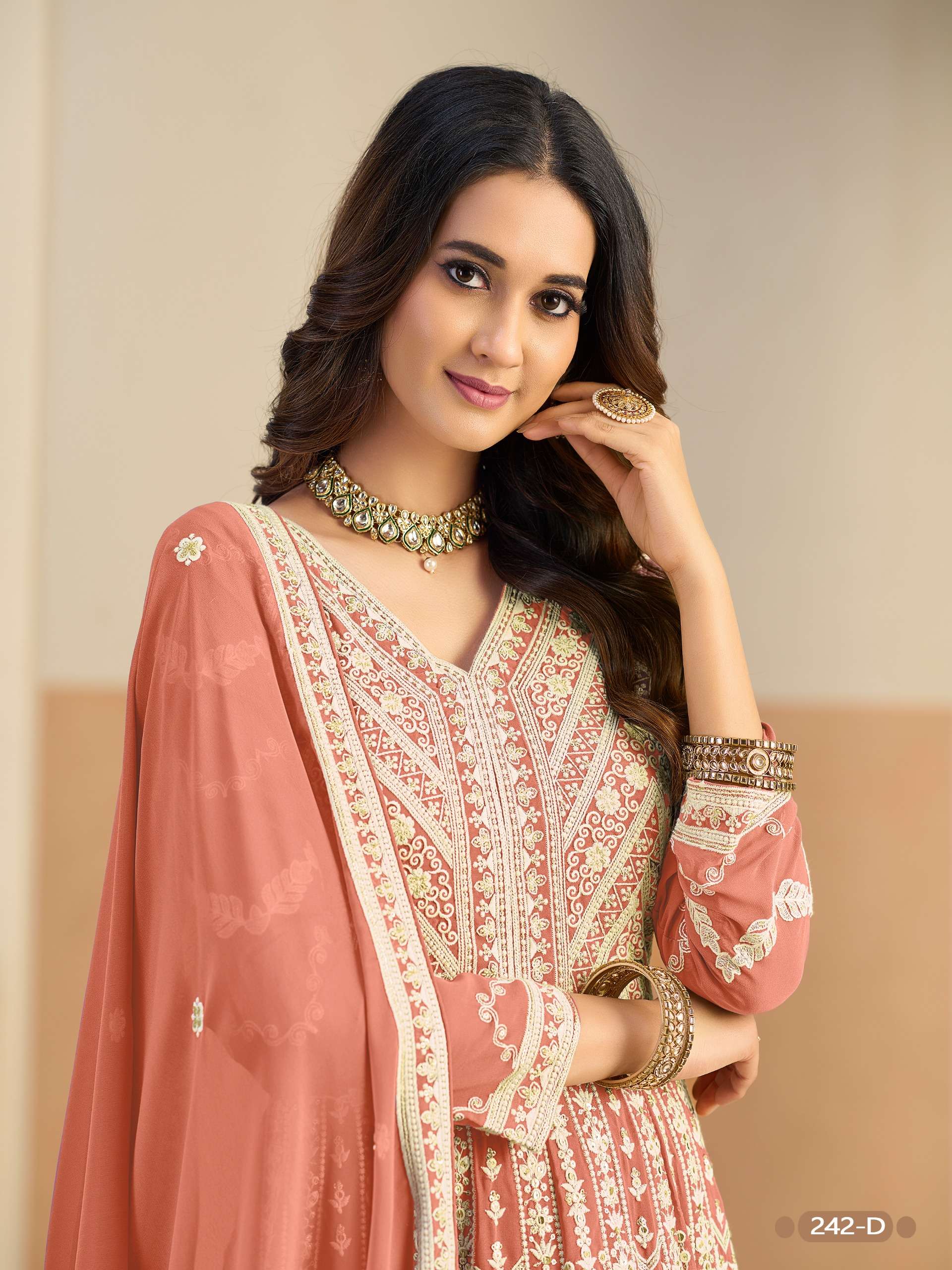 | Catalogue: | Shri Balaji Emporium AANAYA VOL 242 Faux Georgette Heavy Embroidered Anarkali Suit |