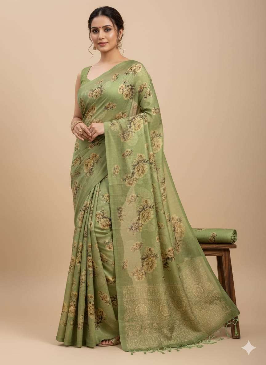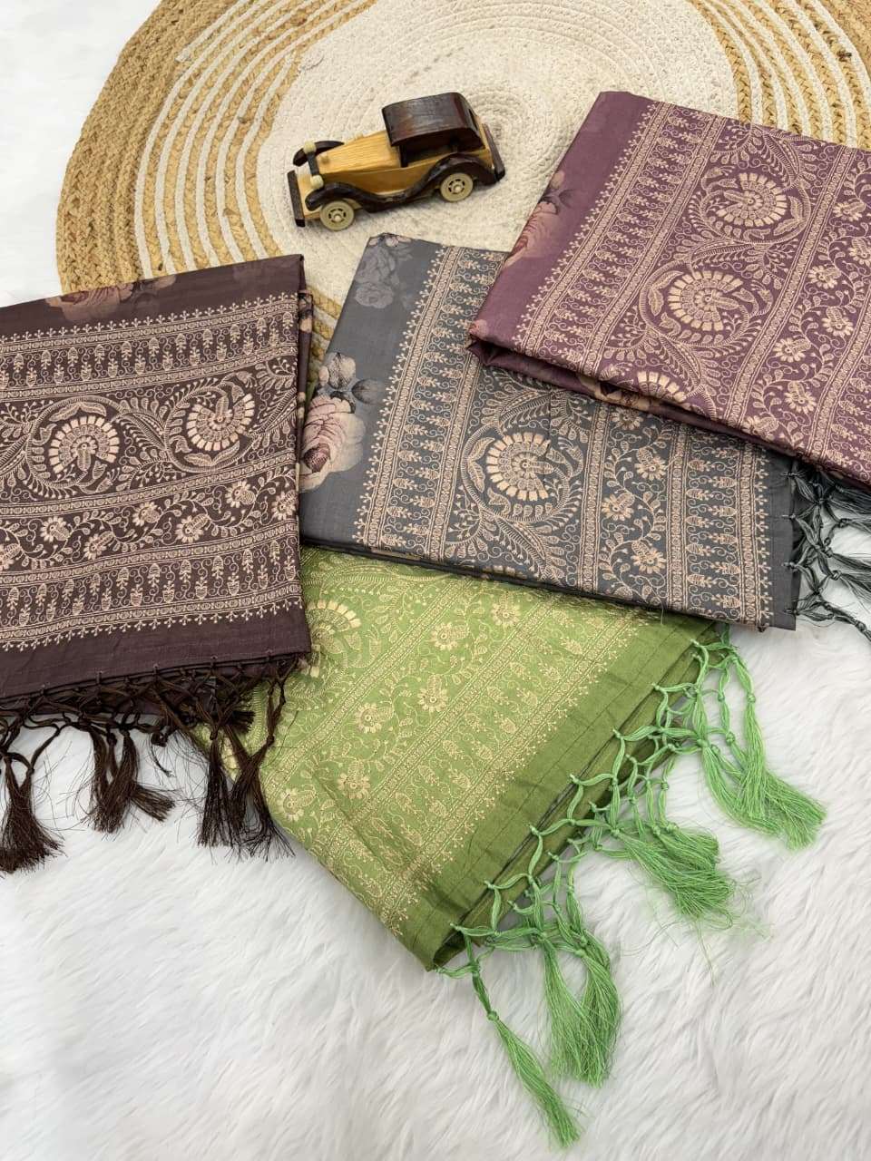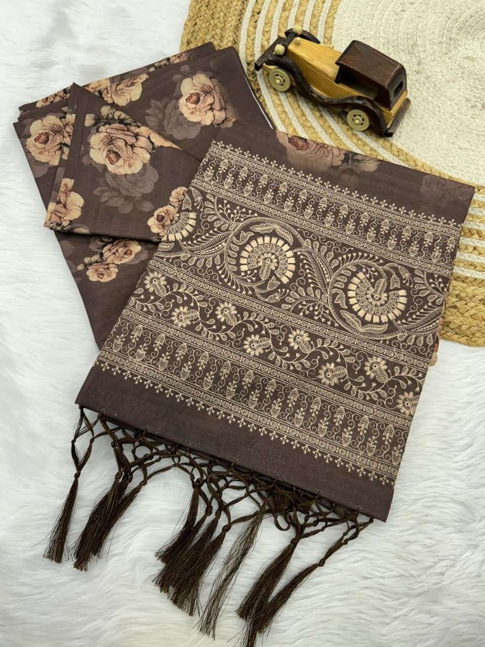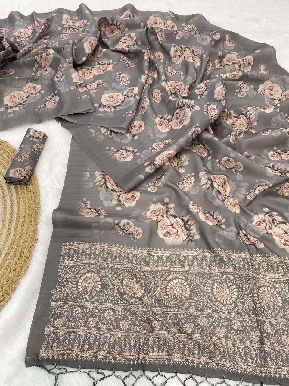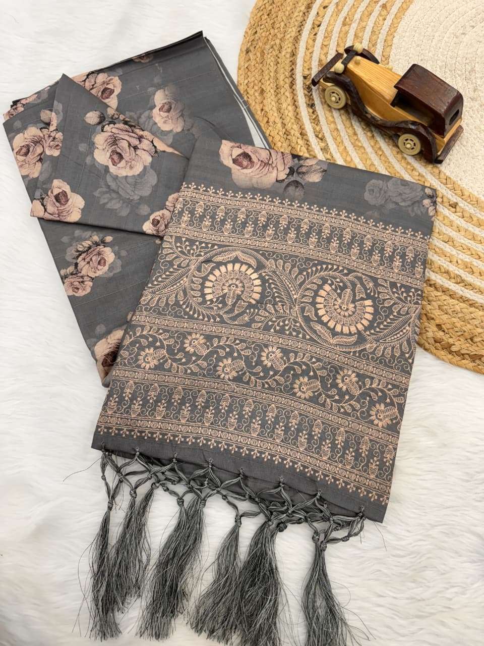 A Beautiful & heavy embroidery work pallu with digital foral print in all saree.