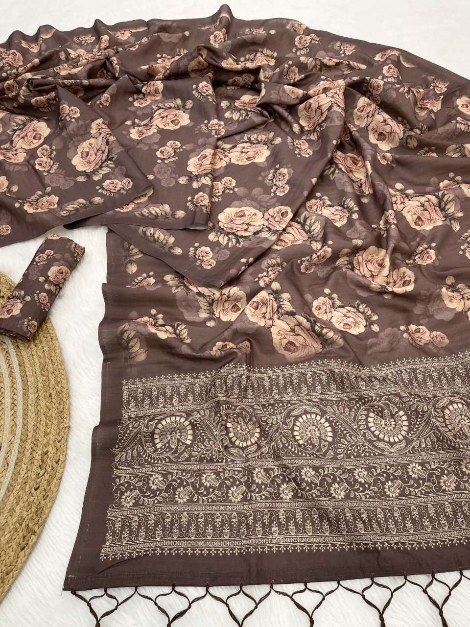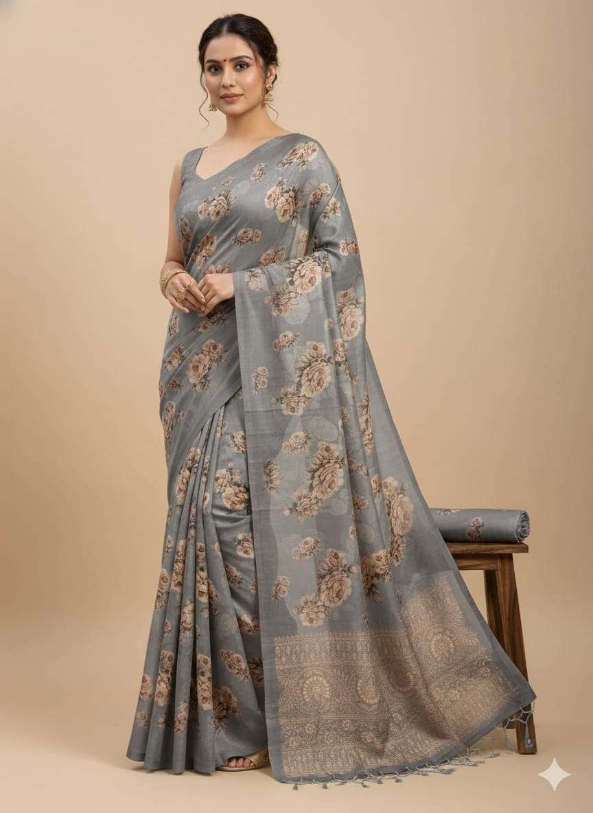 Saree Details : Pure Tussar silk saree with digital print and super intricate embroidery pallu with tassels With a Running Blouse.