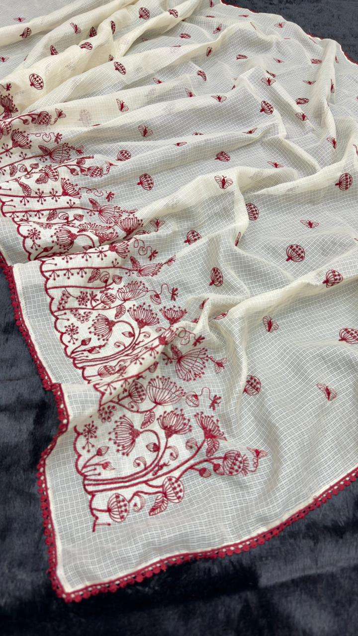 SAREE WORK : FANCY EMBROIDERY MULTY WITH BUTTI LACE WORK
