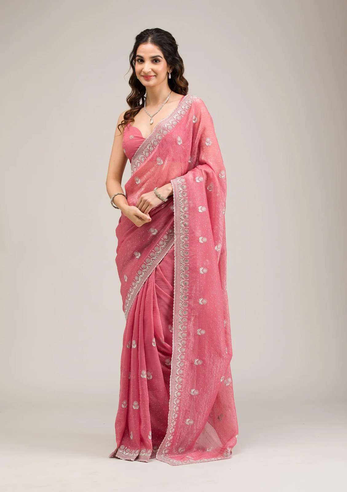 Saree Work : Embroidery Threads Zari With Diamond Work
