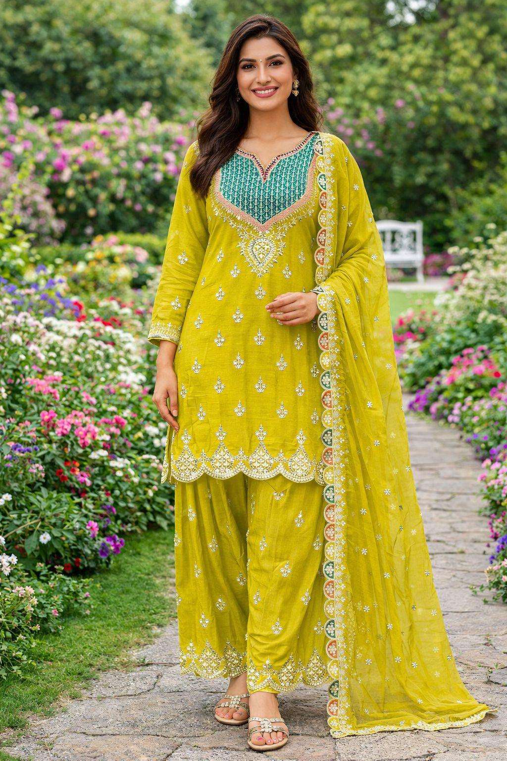 | Catalogue: | Shri Balaji Emporium Chinon Silk Designer Sharara Suit |