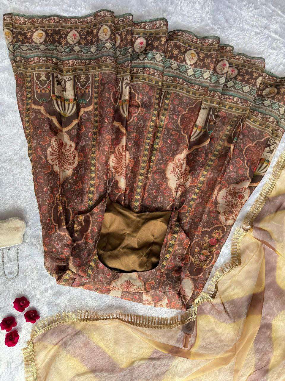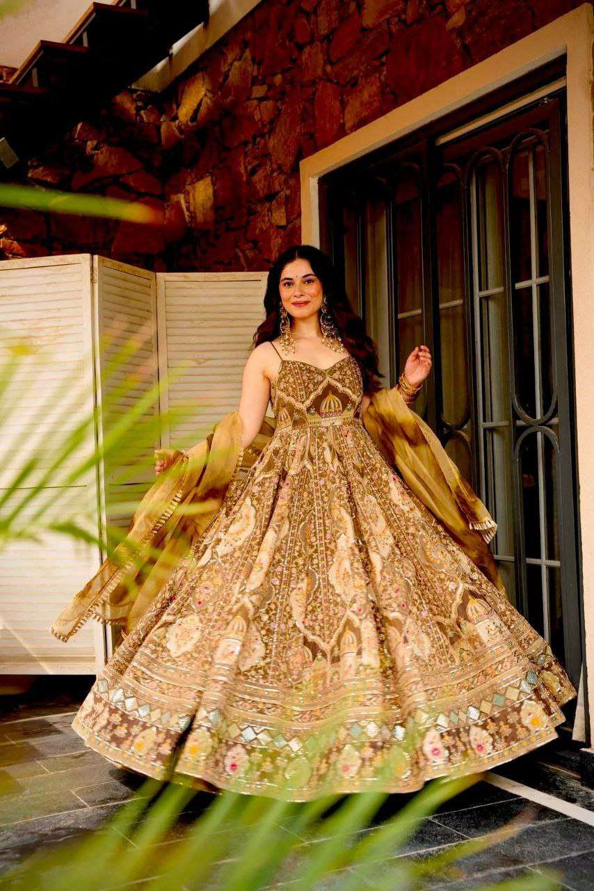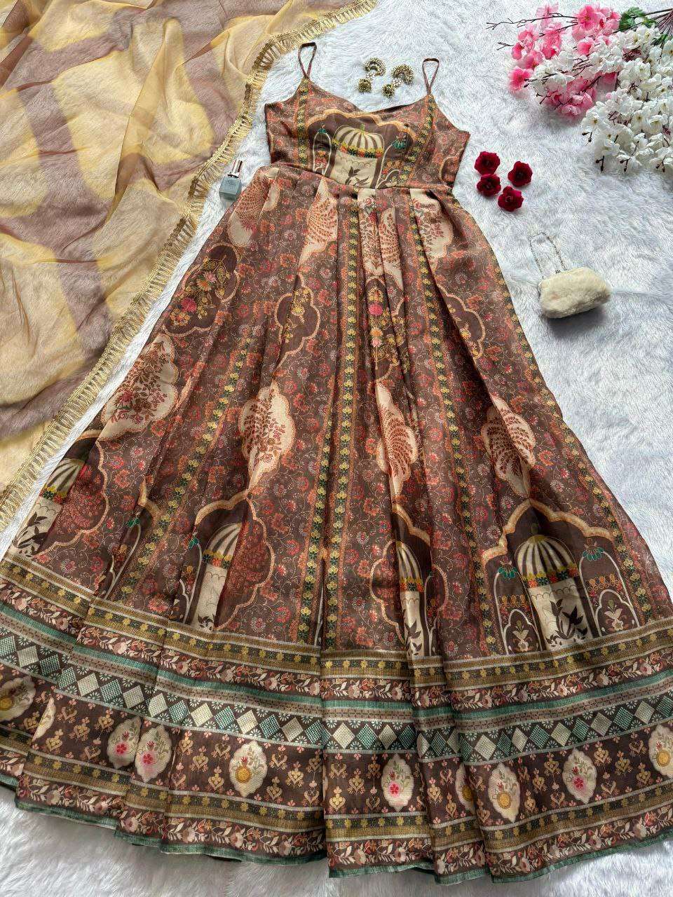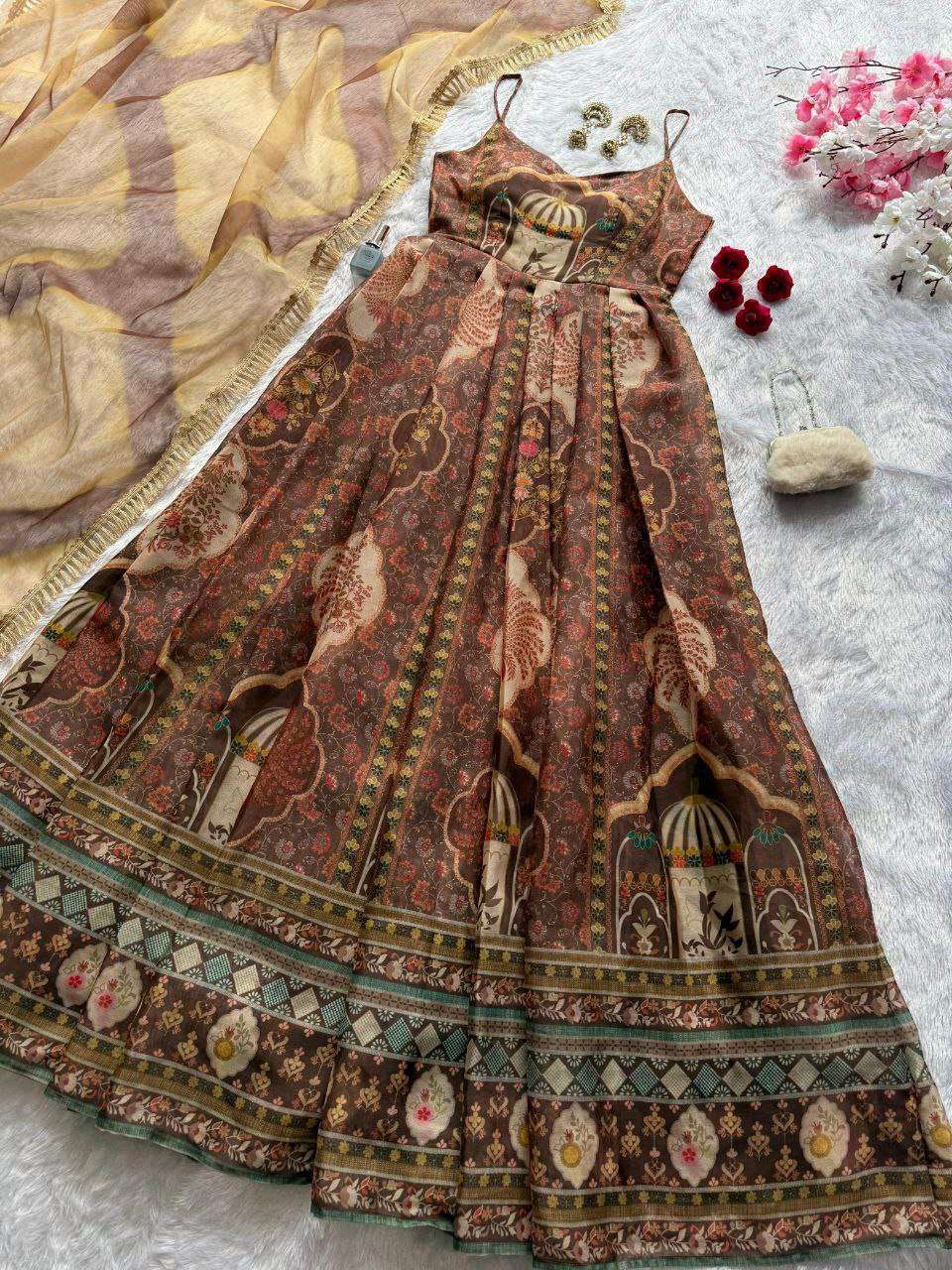 Anarkali gown - Digital printed Jimmy organza silk suit with huge flair