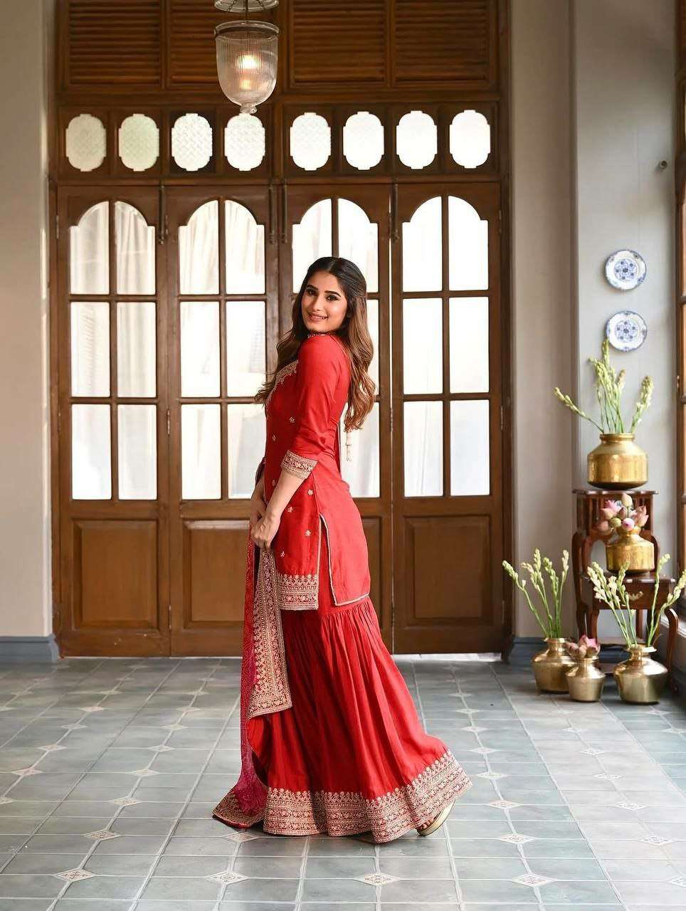 FABRIC :- PURE CHINON SILK WITH FULL SLEEVE.