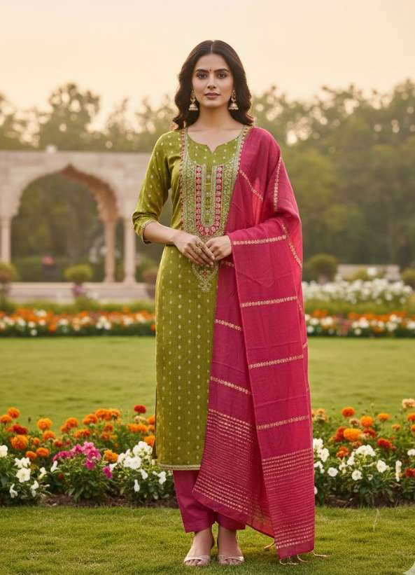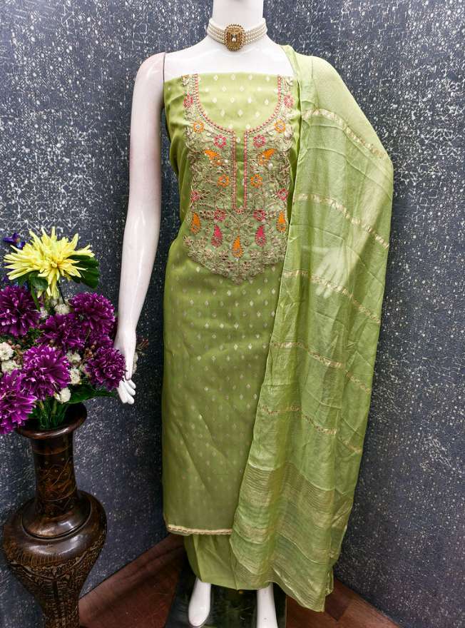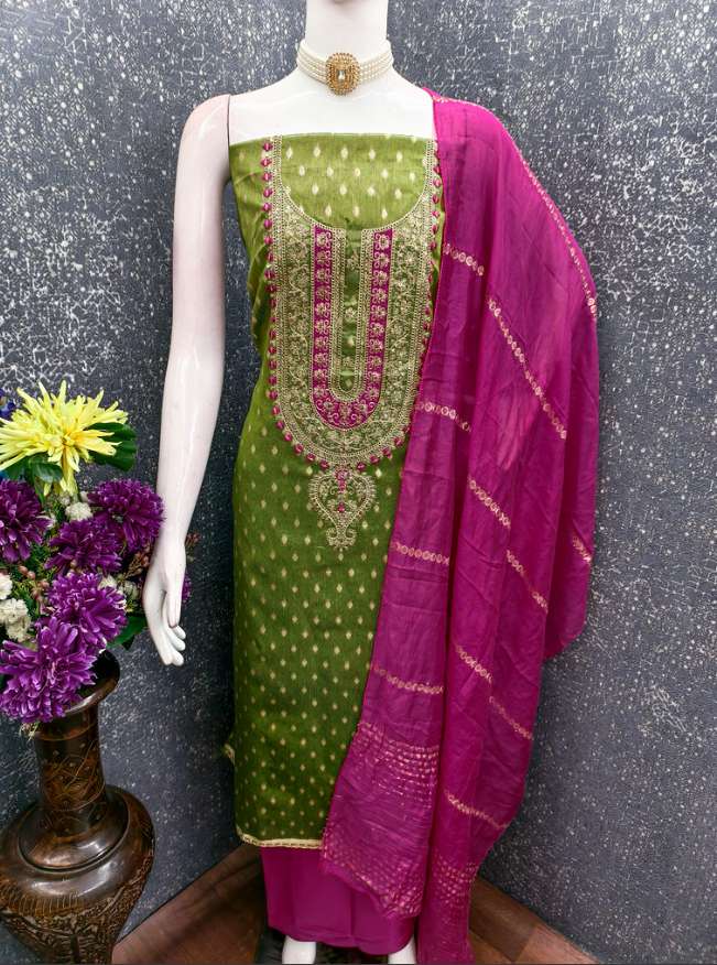 FABRIC - SIMMAR JACQUARD WITH SANTOON BOTTOM AND JARI JACQUARD DUPATTA