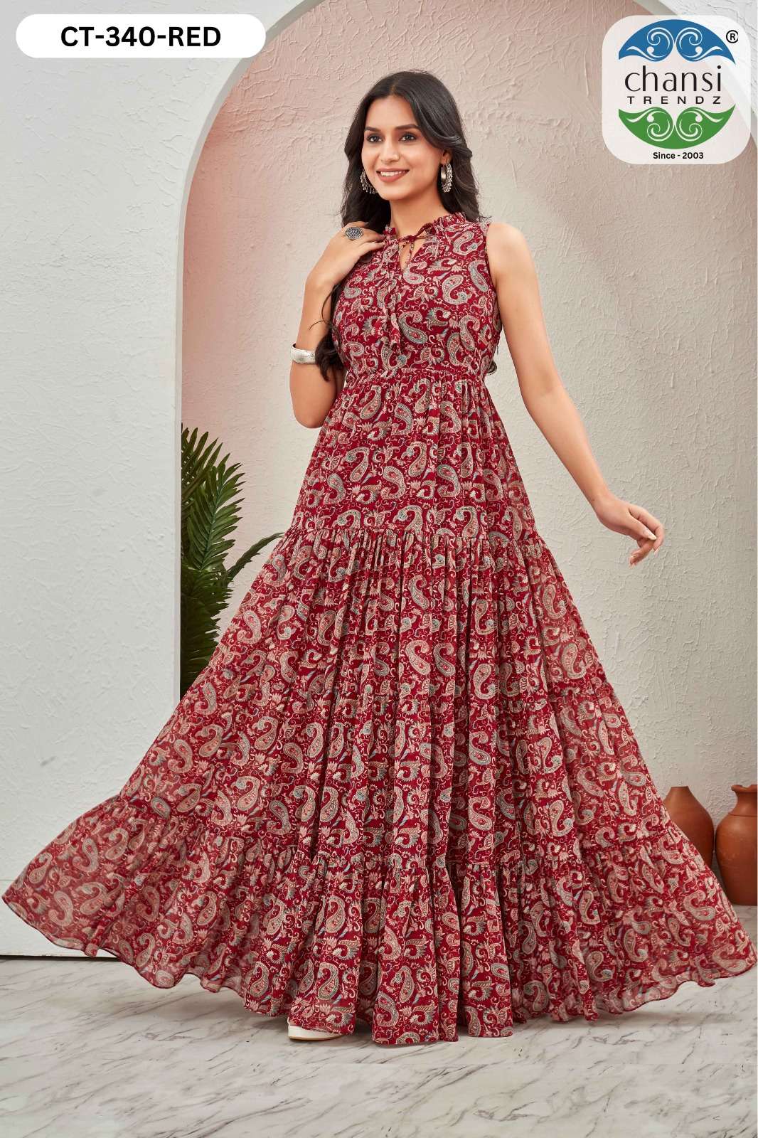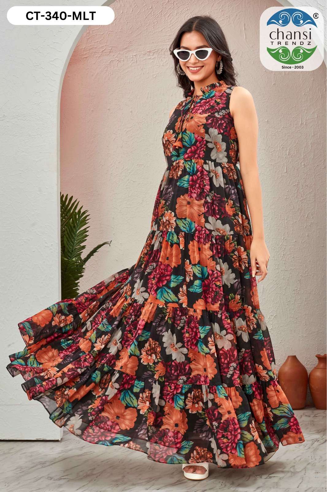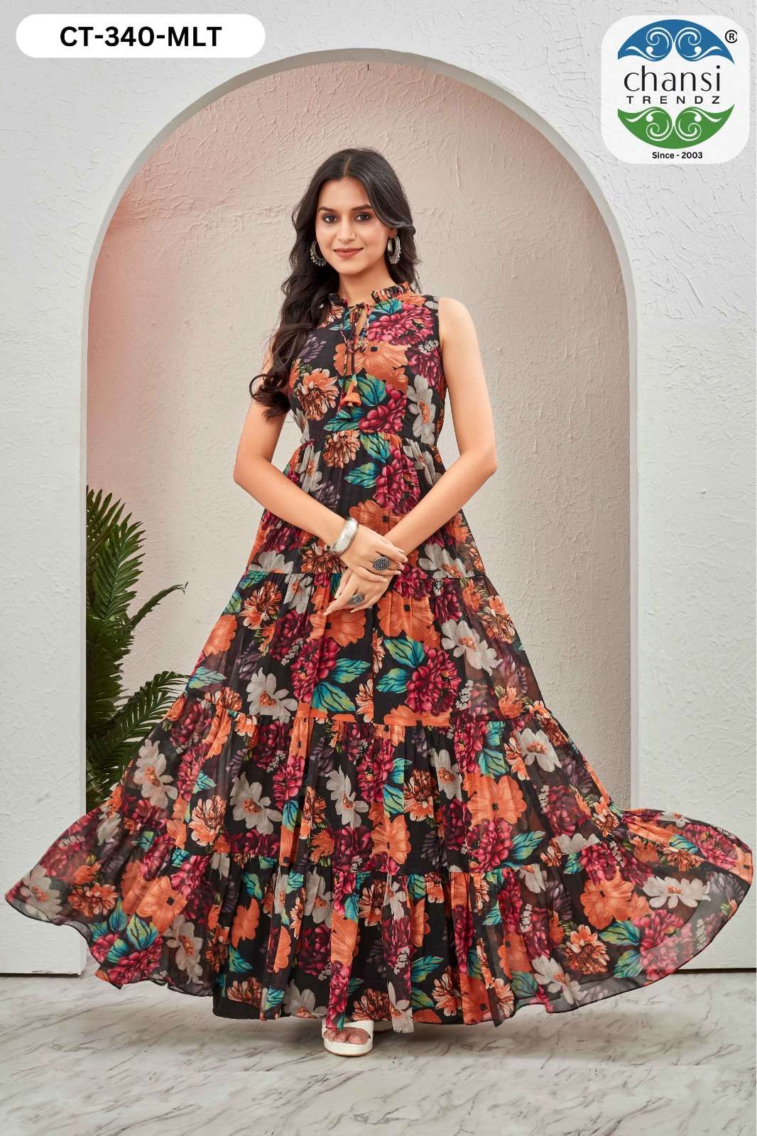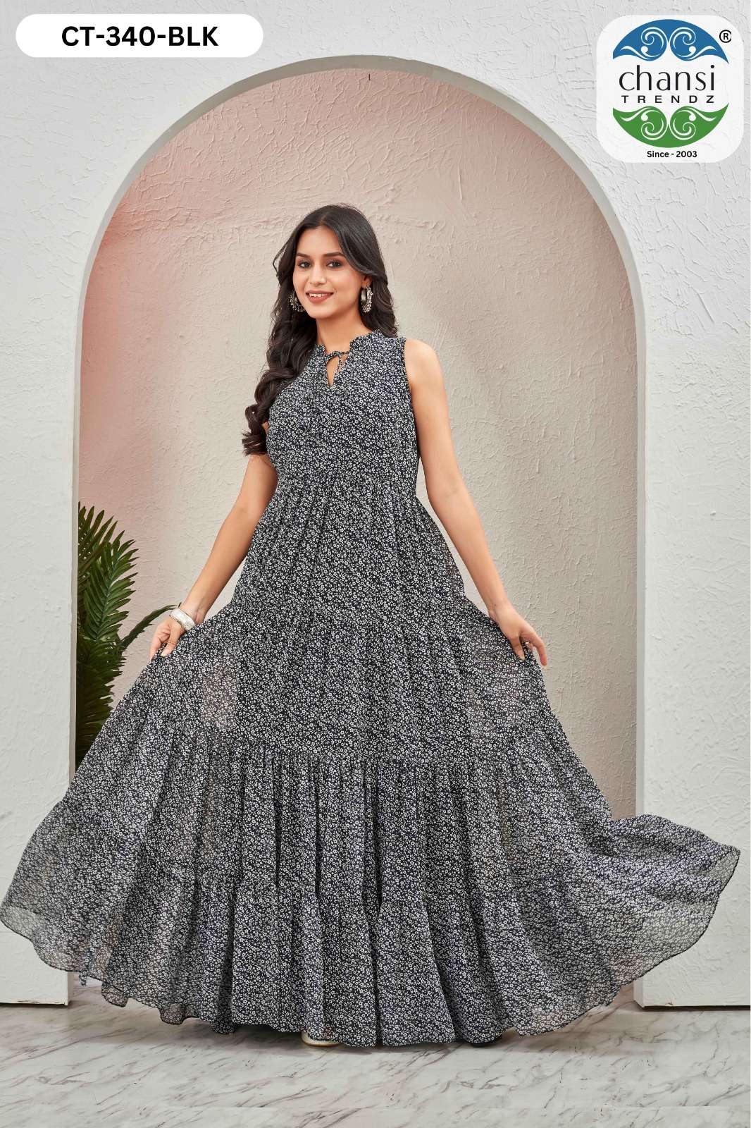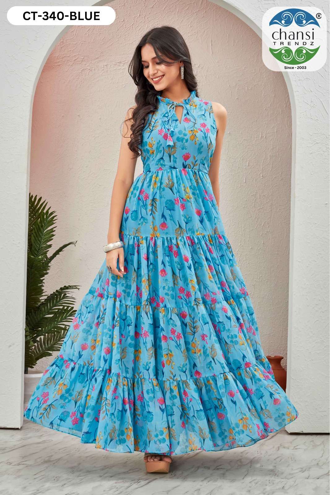 | Catalogue: | Shri Balaji Emporium GRASSY CT 340 COLOURS Georgette Gown |