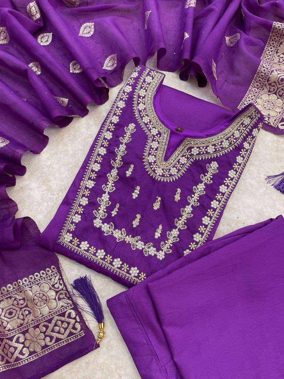 Top Fabric :- Heavy Party Wear Heavy Viscose Pv Chanderi Cotton With Embroidery Sequence Work With Full Sleeve