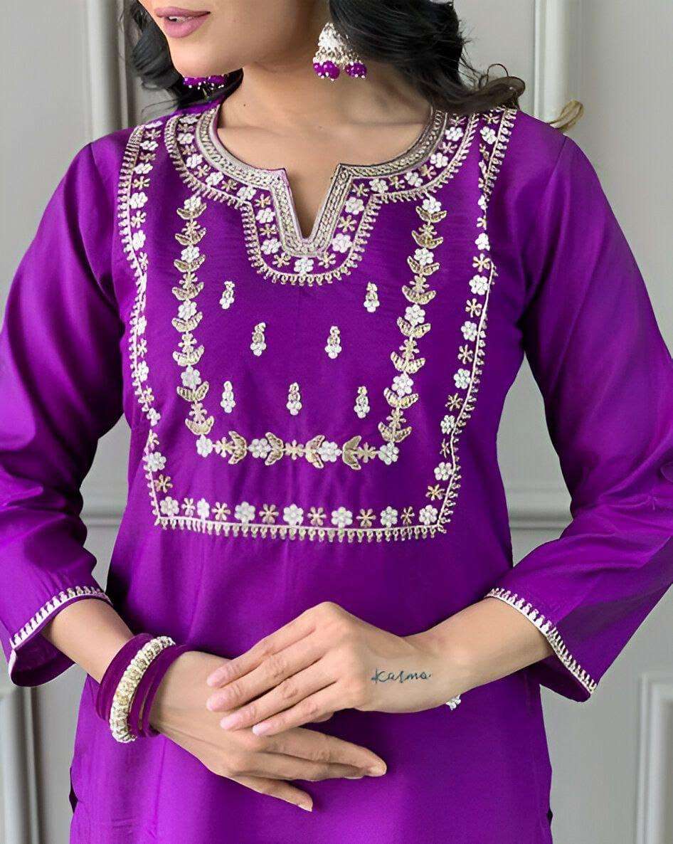 Heavy Viscose Pv Chanderi Cotton With Top-Bottom And Dupatta Set Fully Stitched Ready To Wear