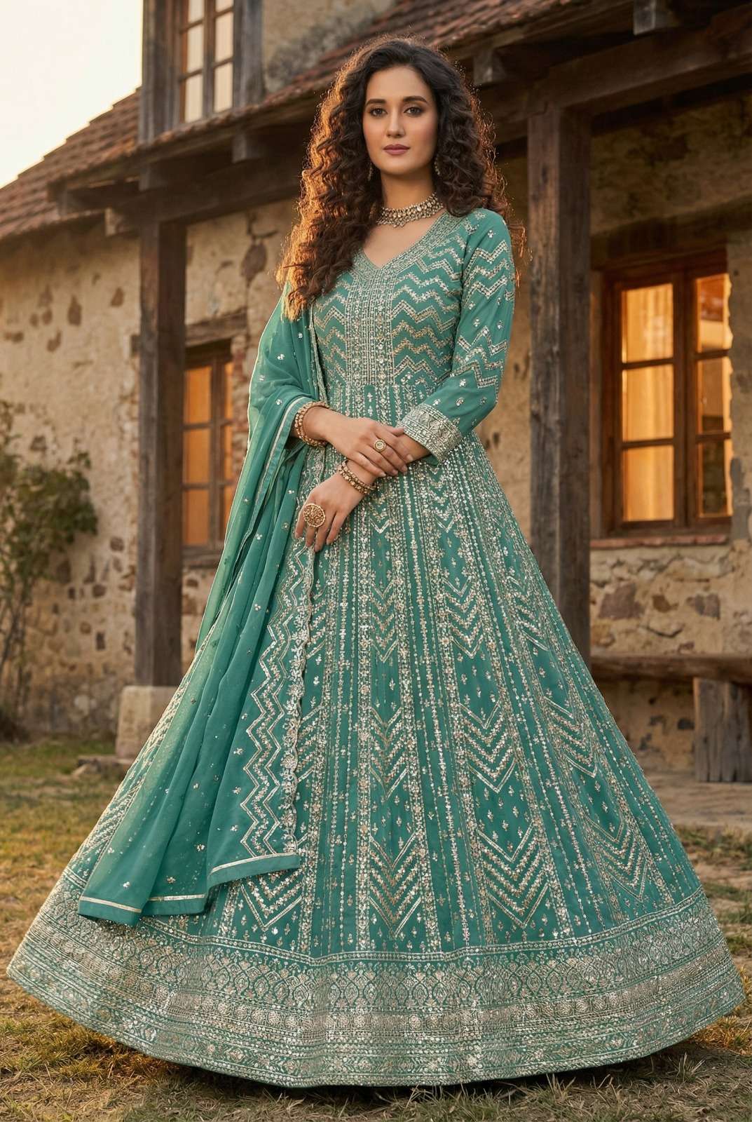 | Catalogue: | Shri Balaji Emporium HEER Ready to Wear Georgette with Heavy Zari & Thread Embroidery Work Gown |