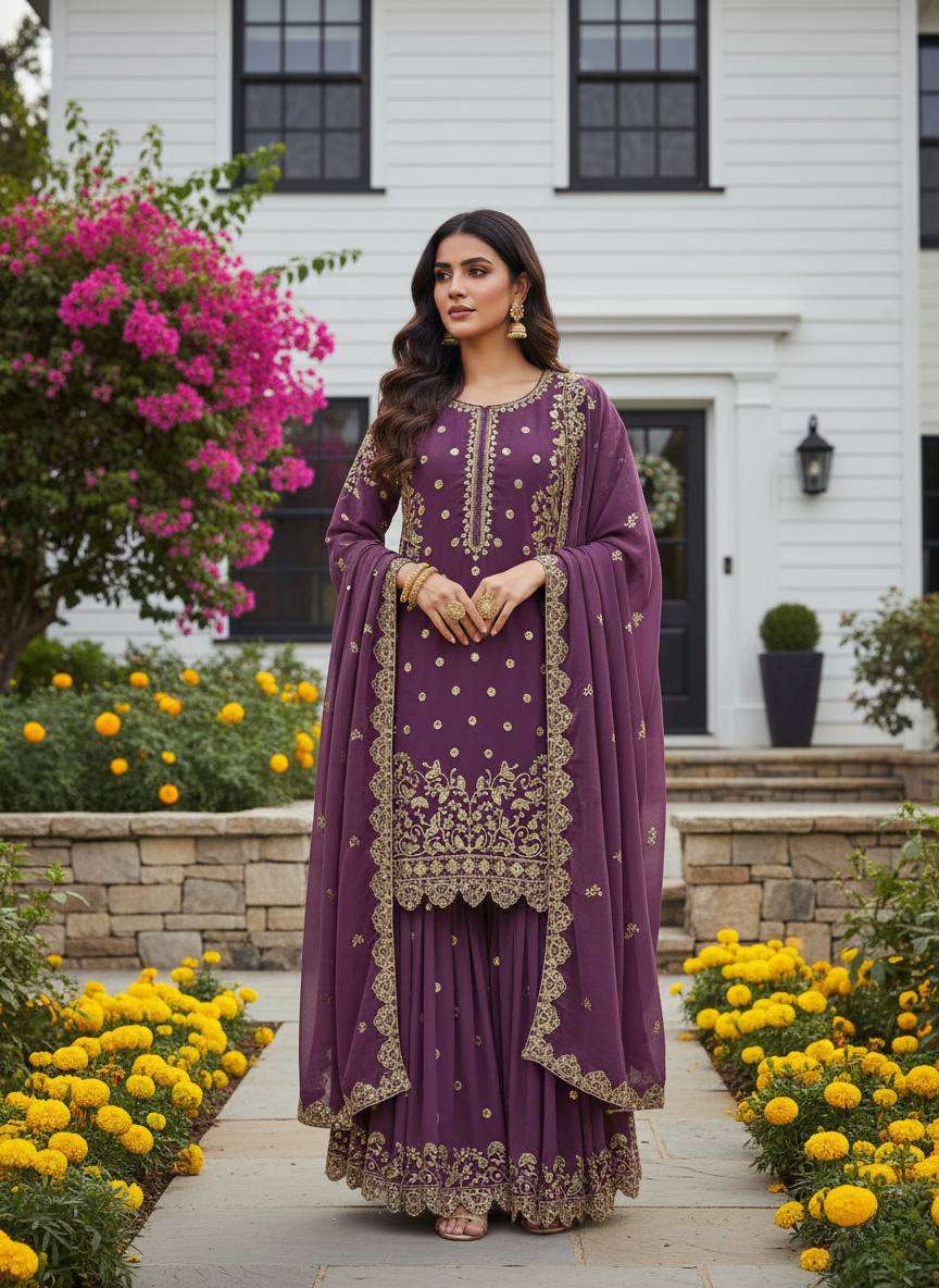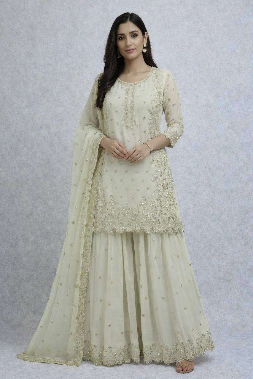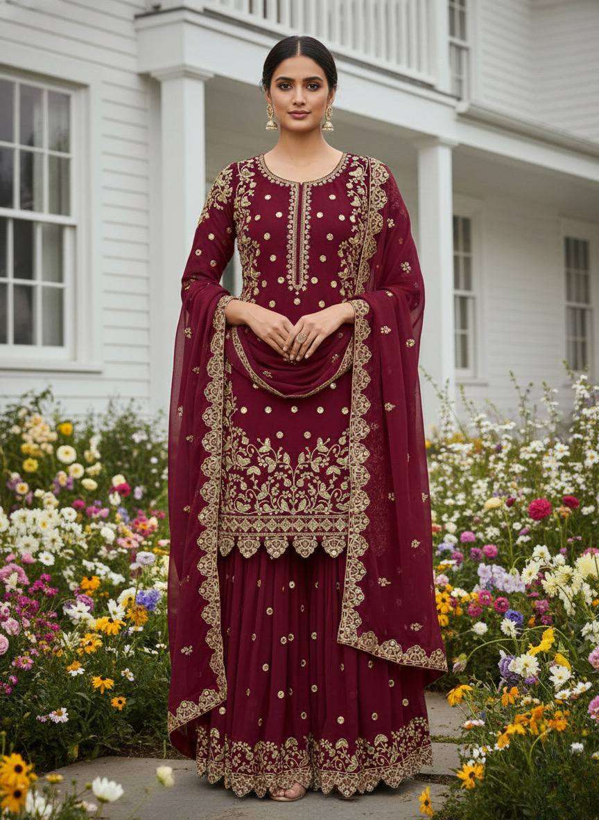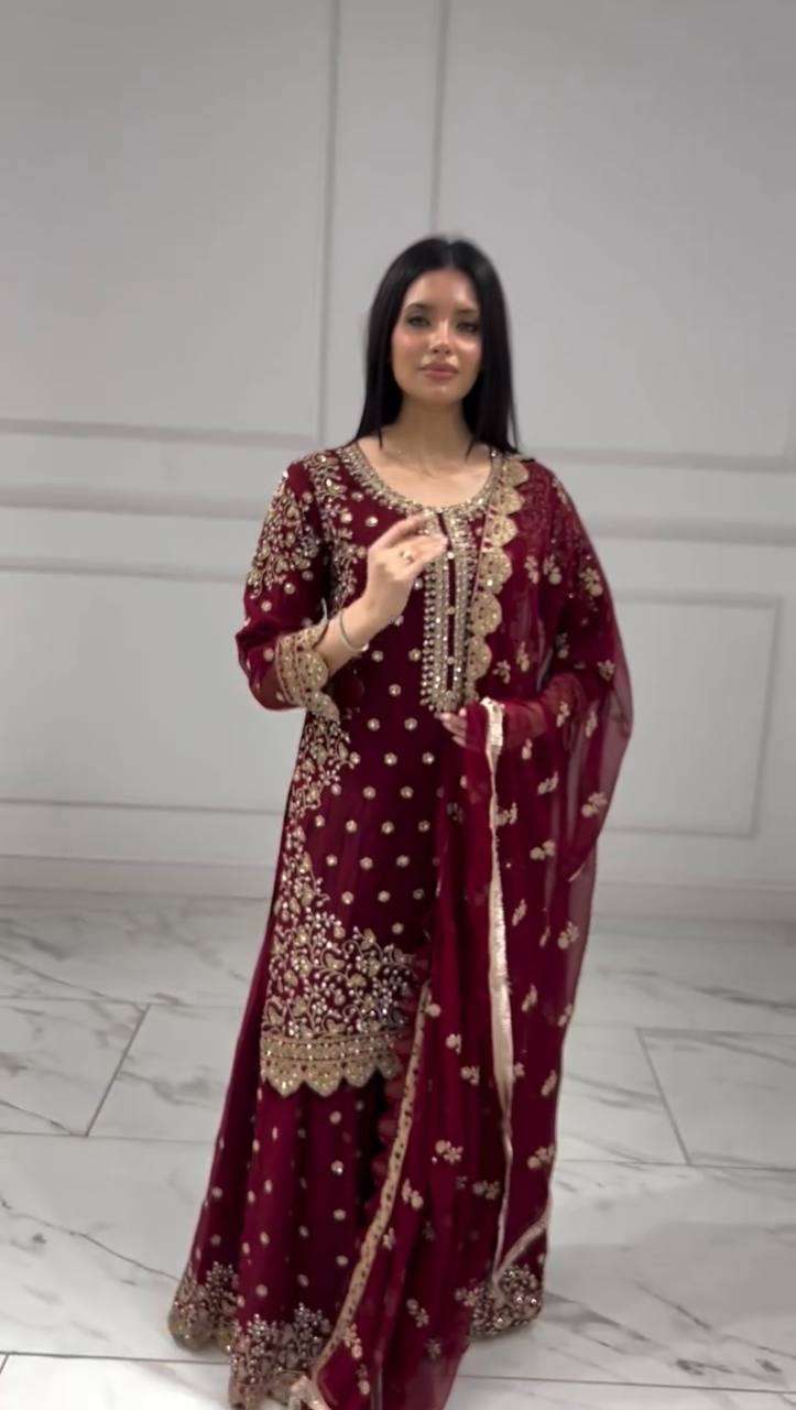 *Presenting New Premium Quality With Embroidery Sequence Worked Top-Plazzo And Dupatta Set Fully Stitched Ready To Wear