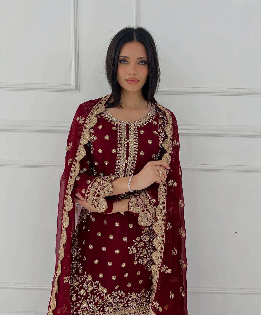 *Dupatta Fabric* : Heavy Faux Georgette With Embroidery And Sequins Work
