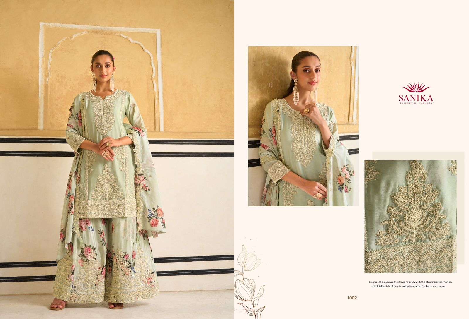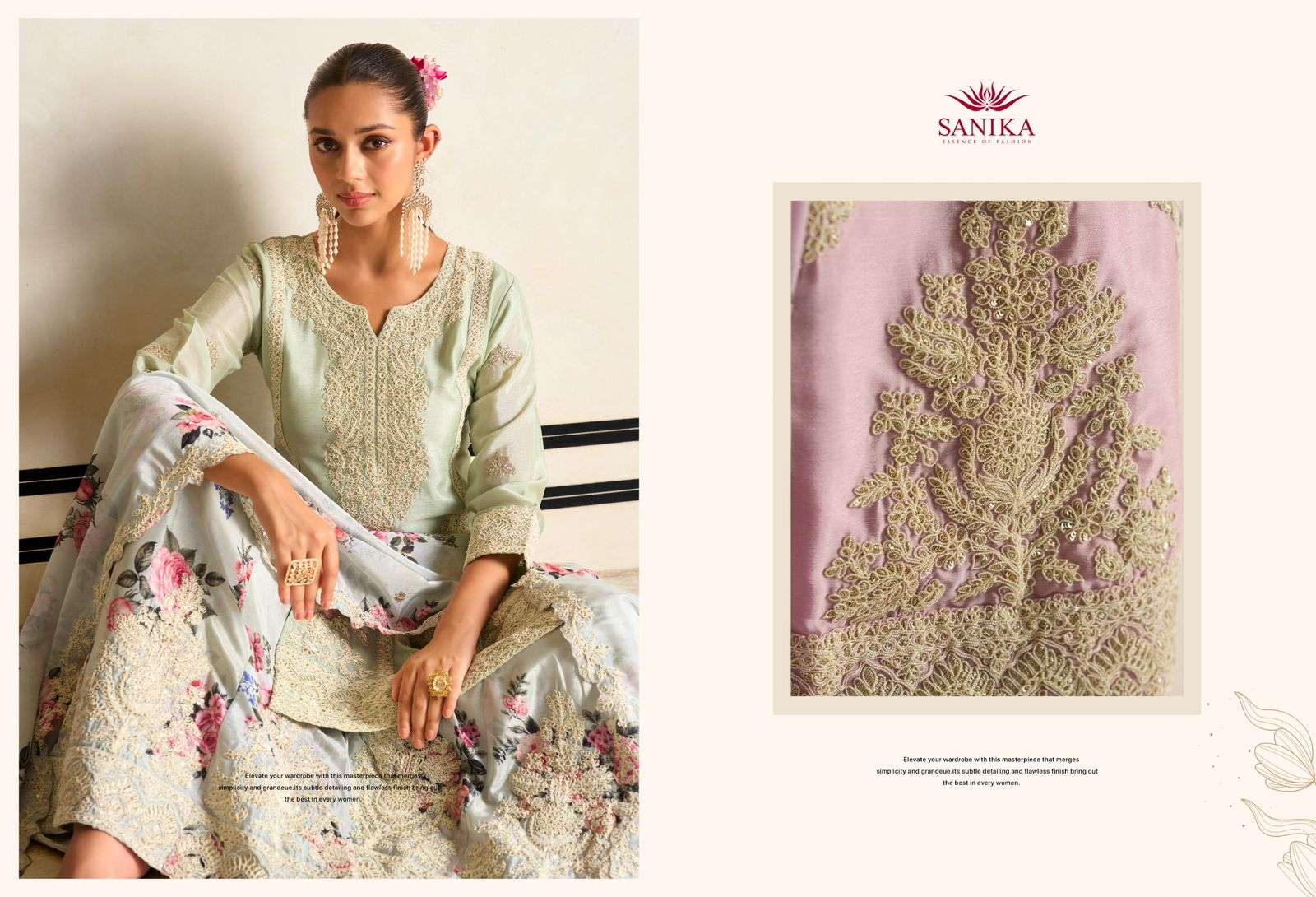 BOTTOM. - PREMIUM CHINON DESIGNER PLAZO WITH HEAVY EMB AND HAND WORK