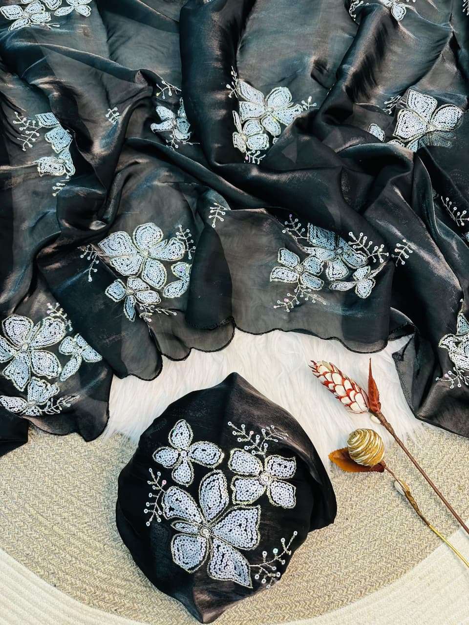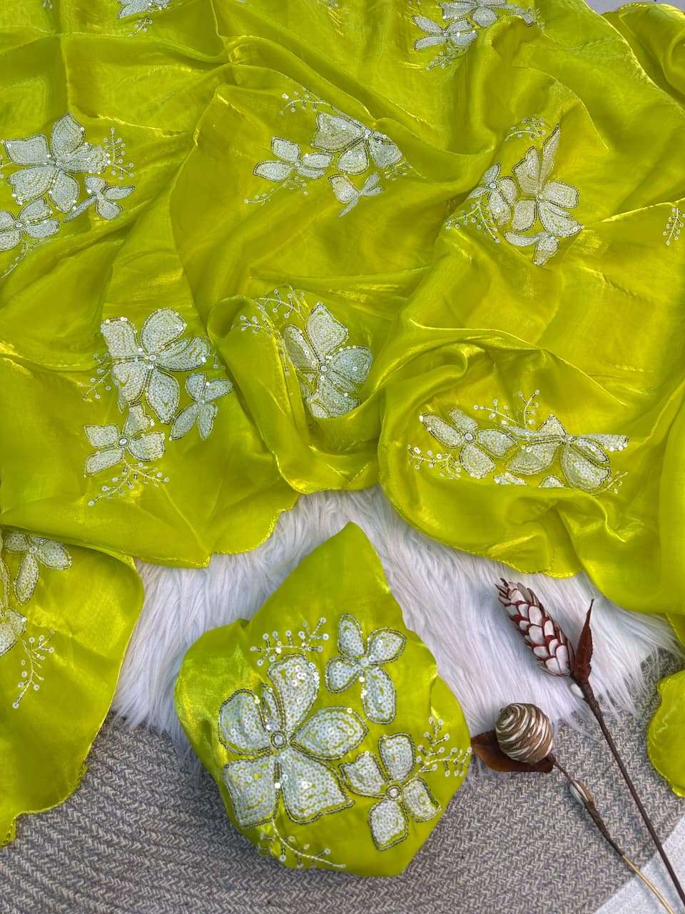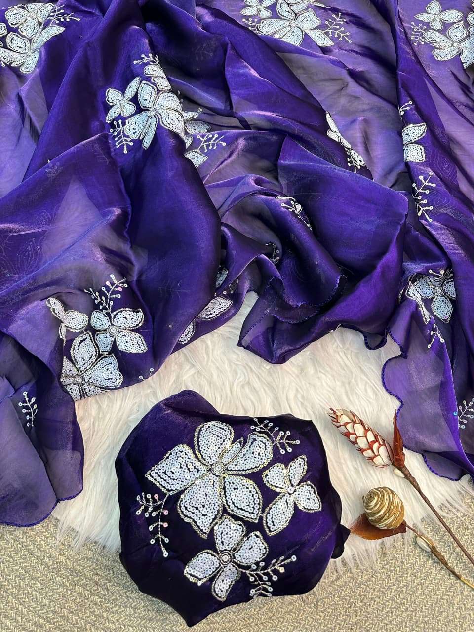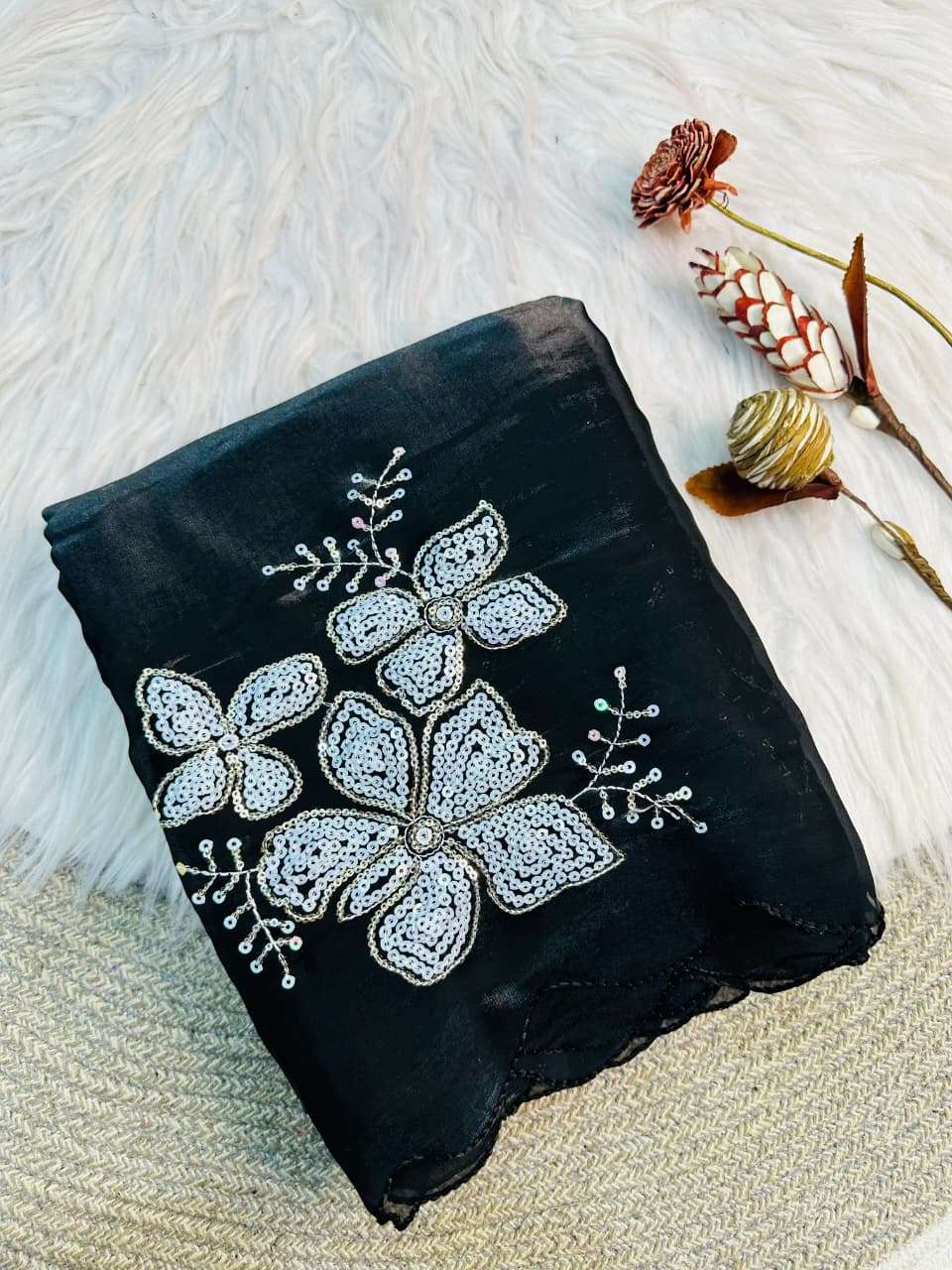 Saree : Jimmychoo saree with embroidery sequence work butta in saree.