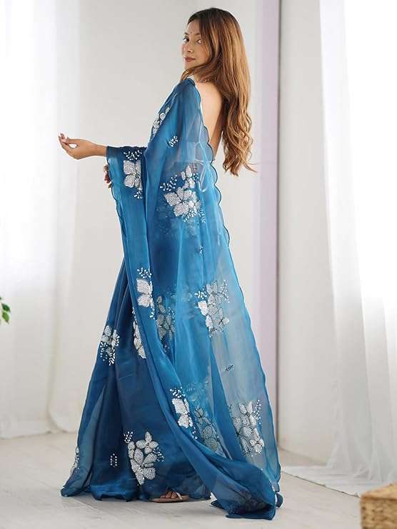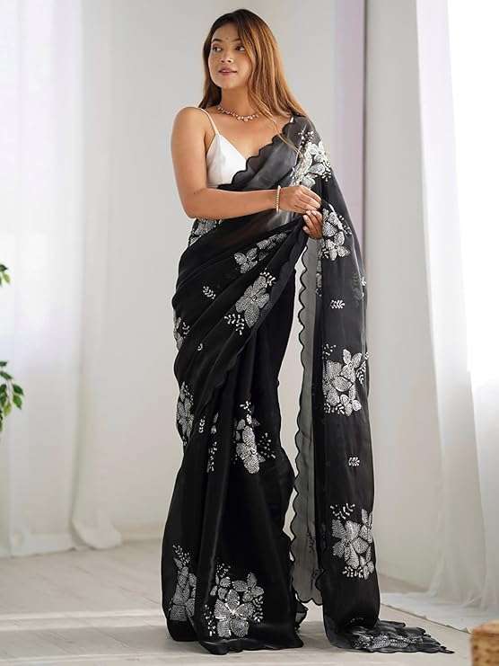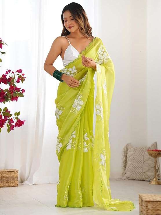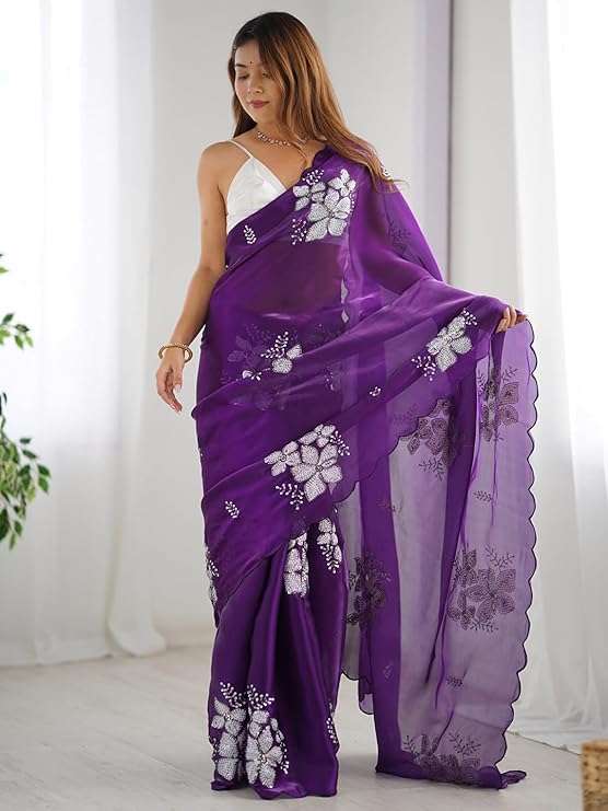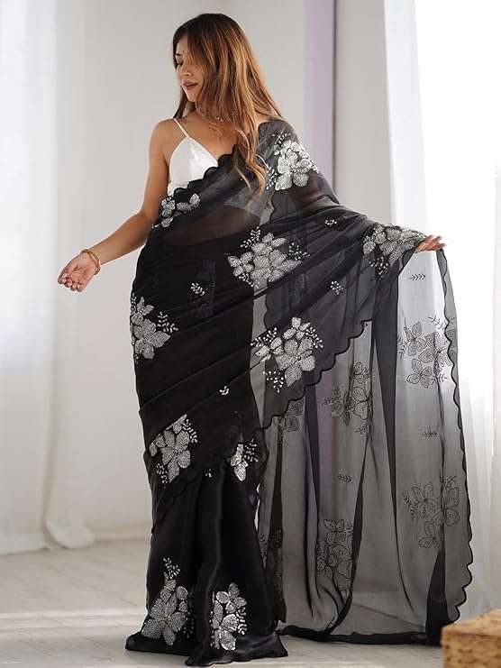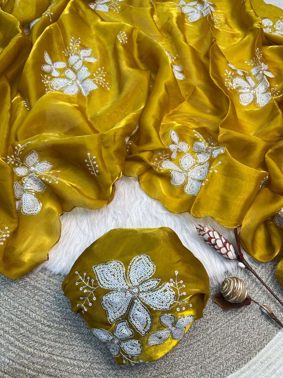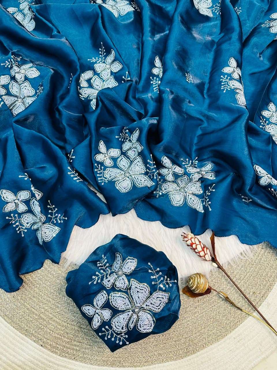 Saree : Jimmychoo saree with embroidery sequence work butta in saree.