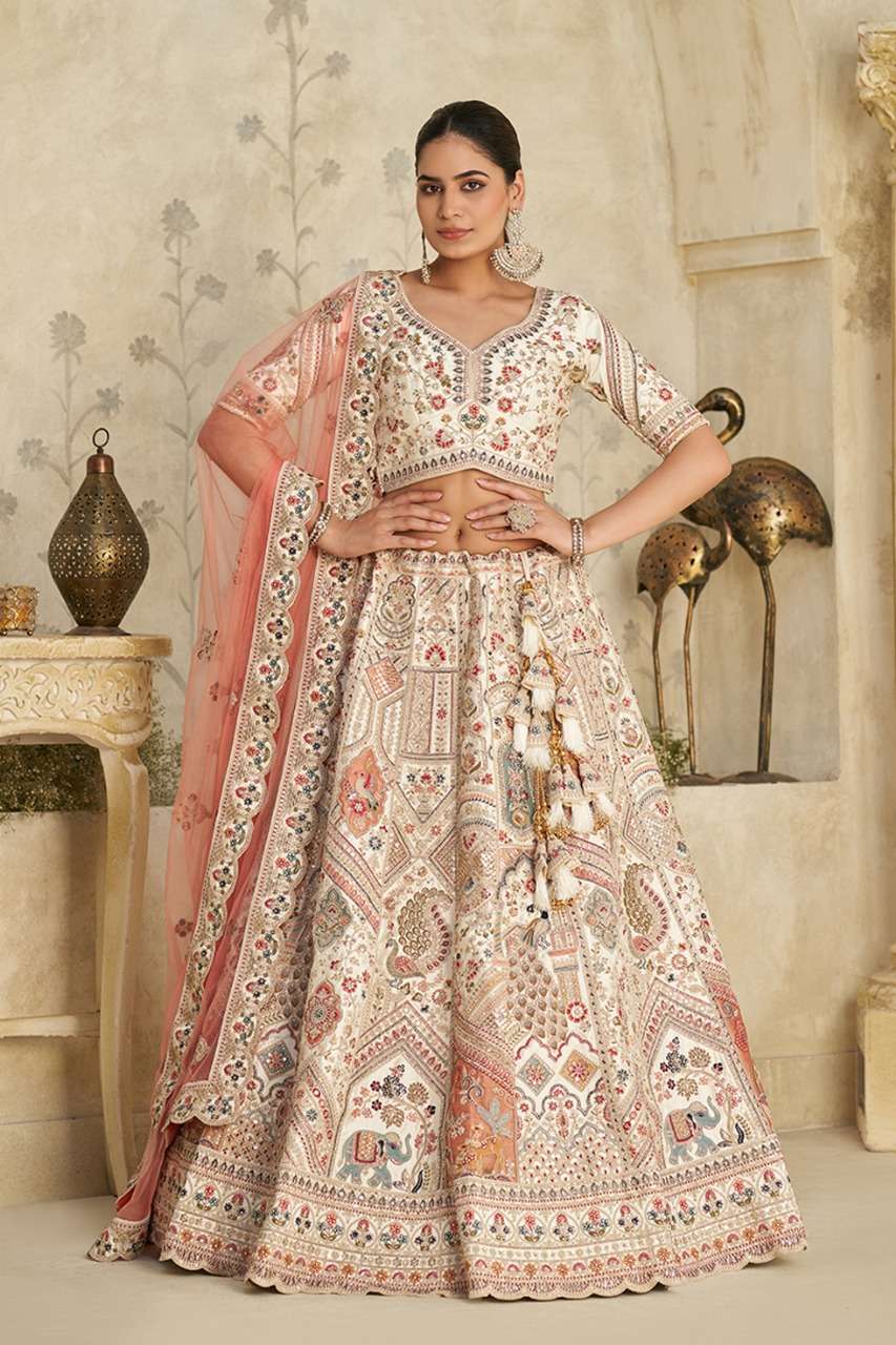 Intricately Embroidered Cream Zari Lehenga with Royal Motifs