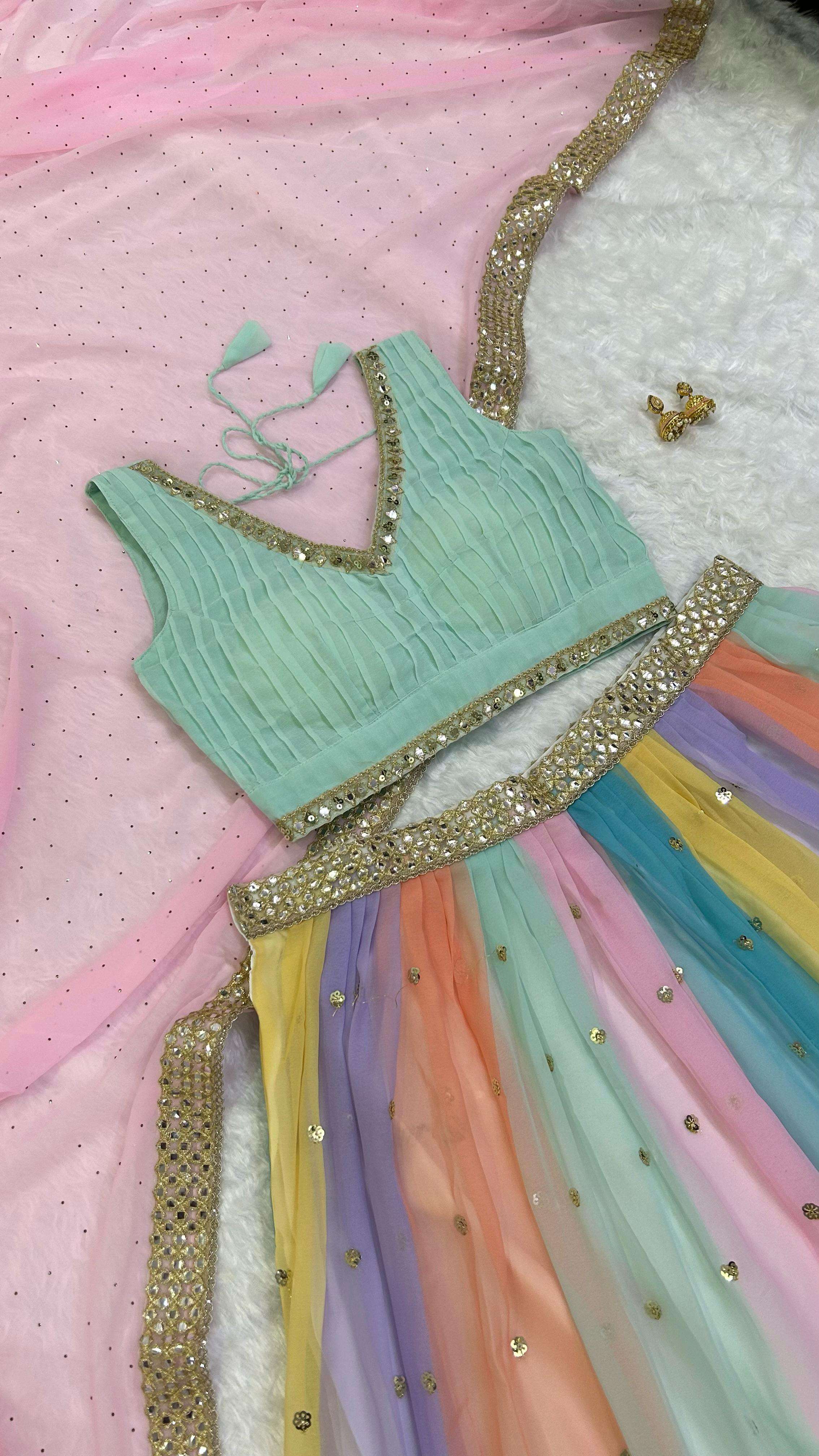 Heavy faux georgette lehenga with sequins work + paper mirror work