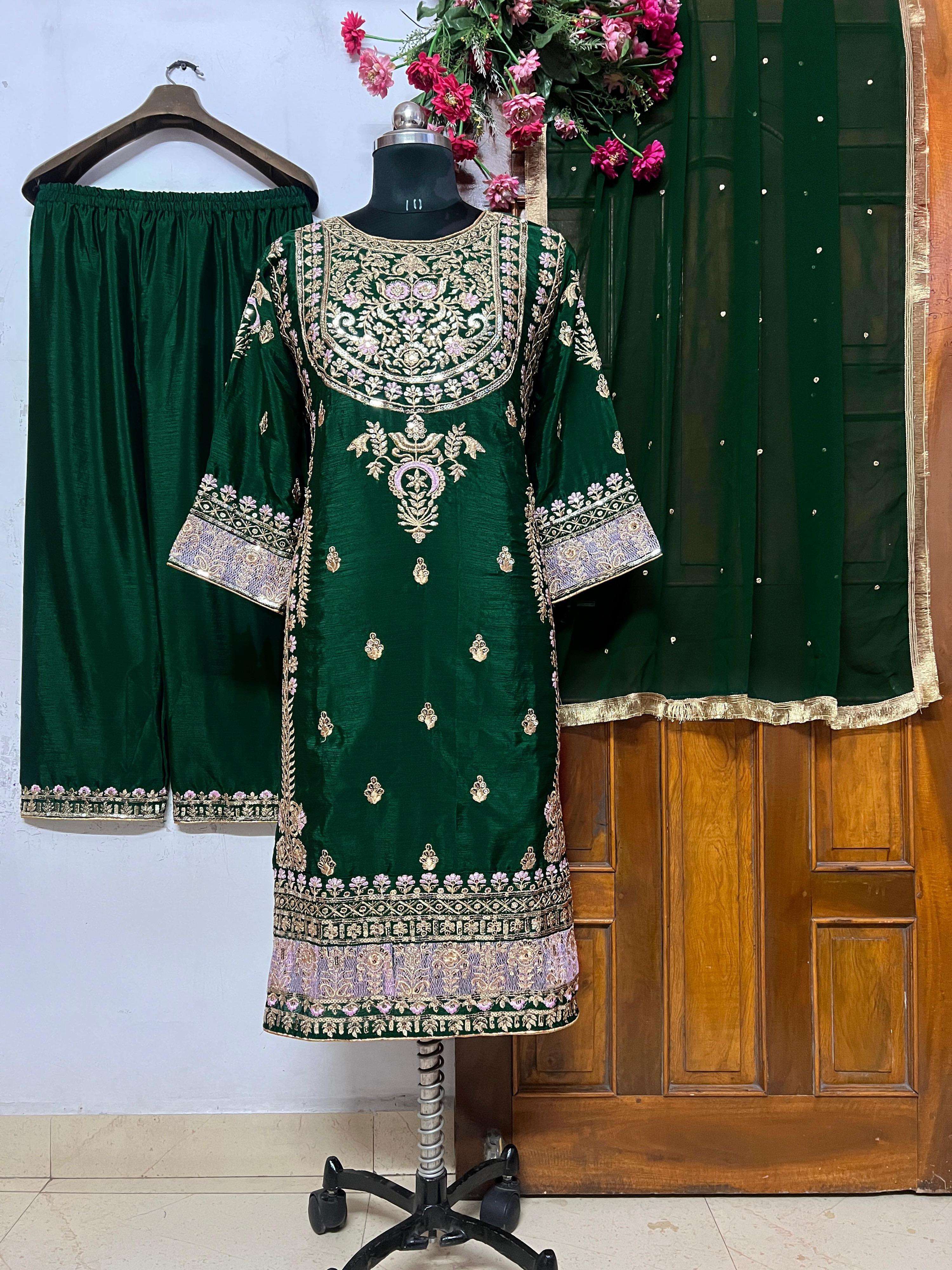 PLAZZO : CHINON SILK WITH SEQUINS EMBROIDERY WORK (FULLY STITCHED)