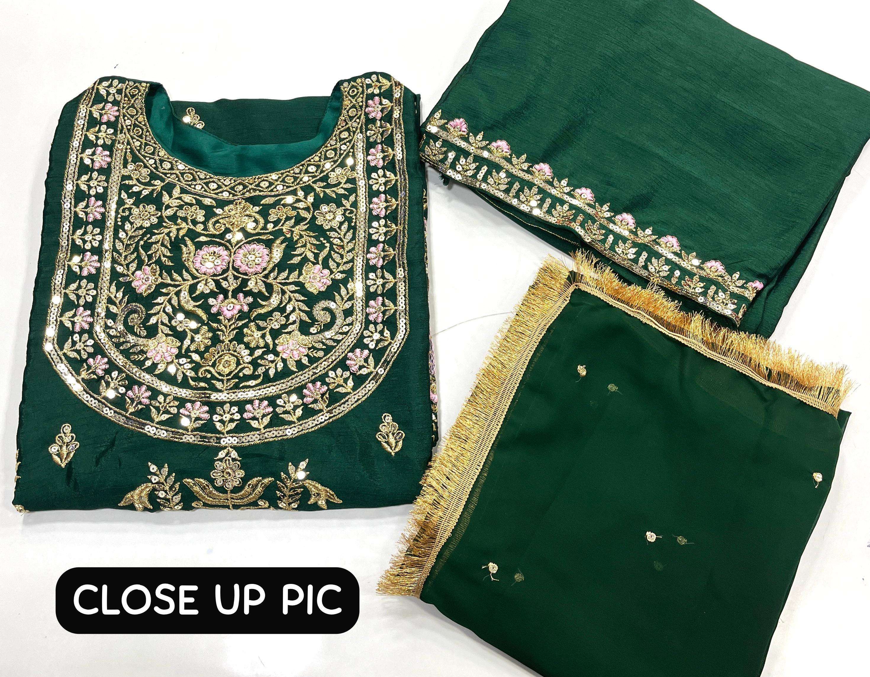 TOP : CHINON SILK WITH SEQUINS EMBROIDERY WORK (FULLY STITCHED)