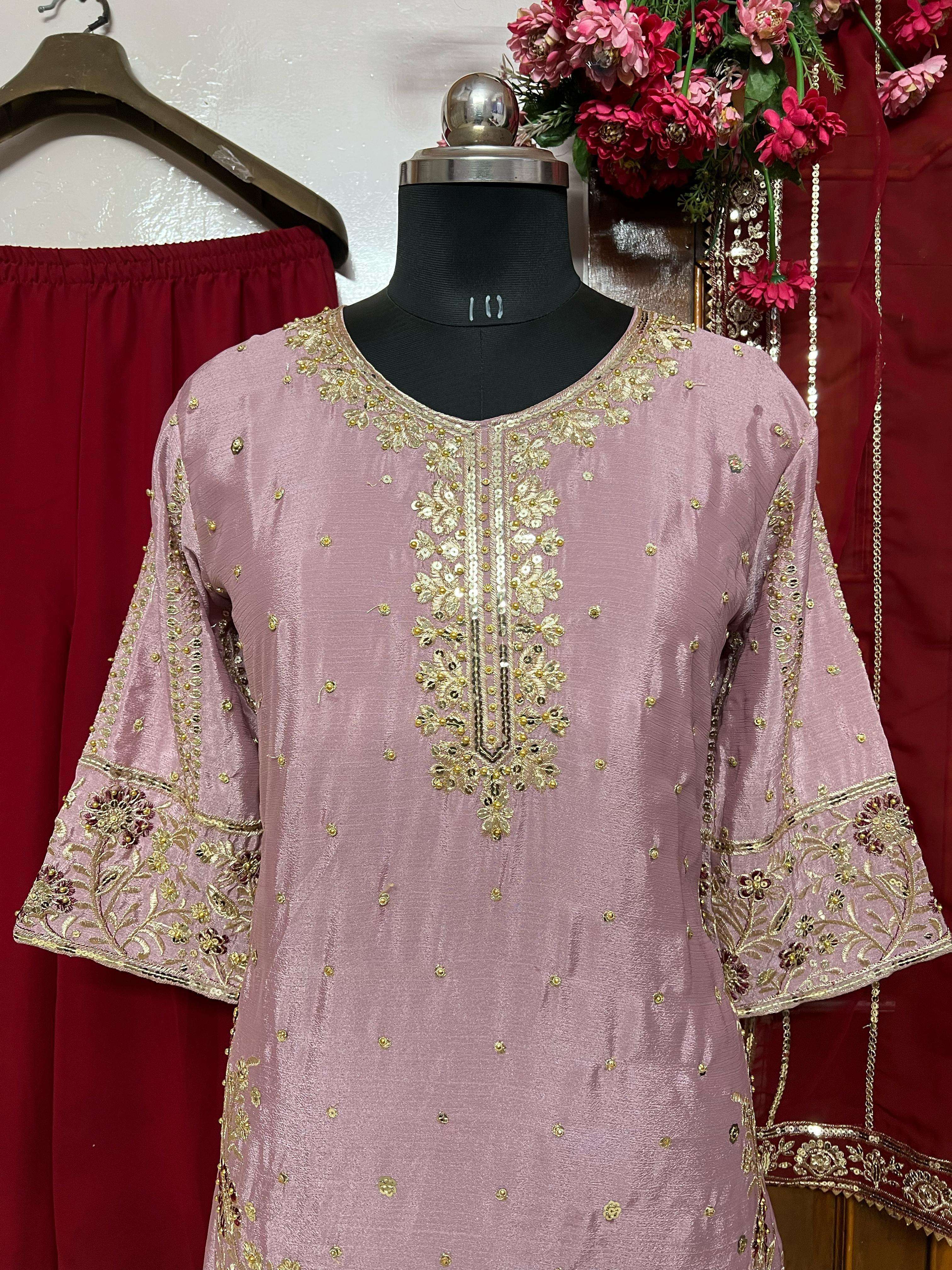 Work : thread & 5mm sequins embroidery work & bids and diamond handwork