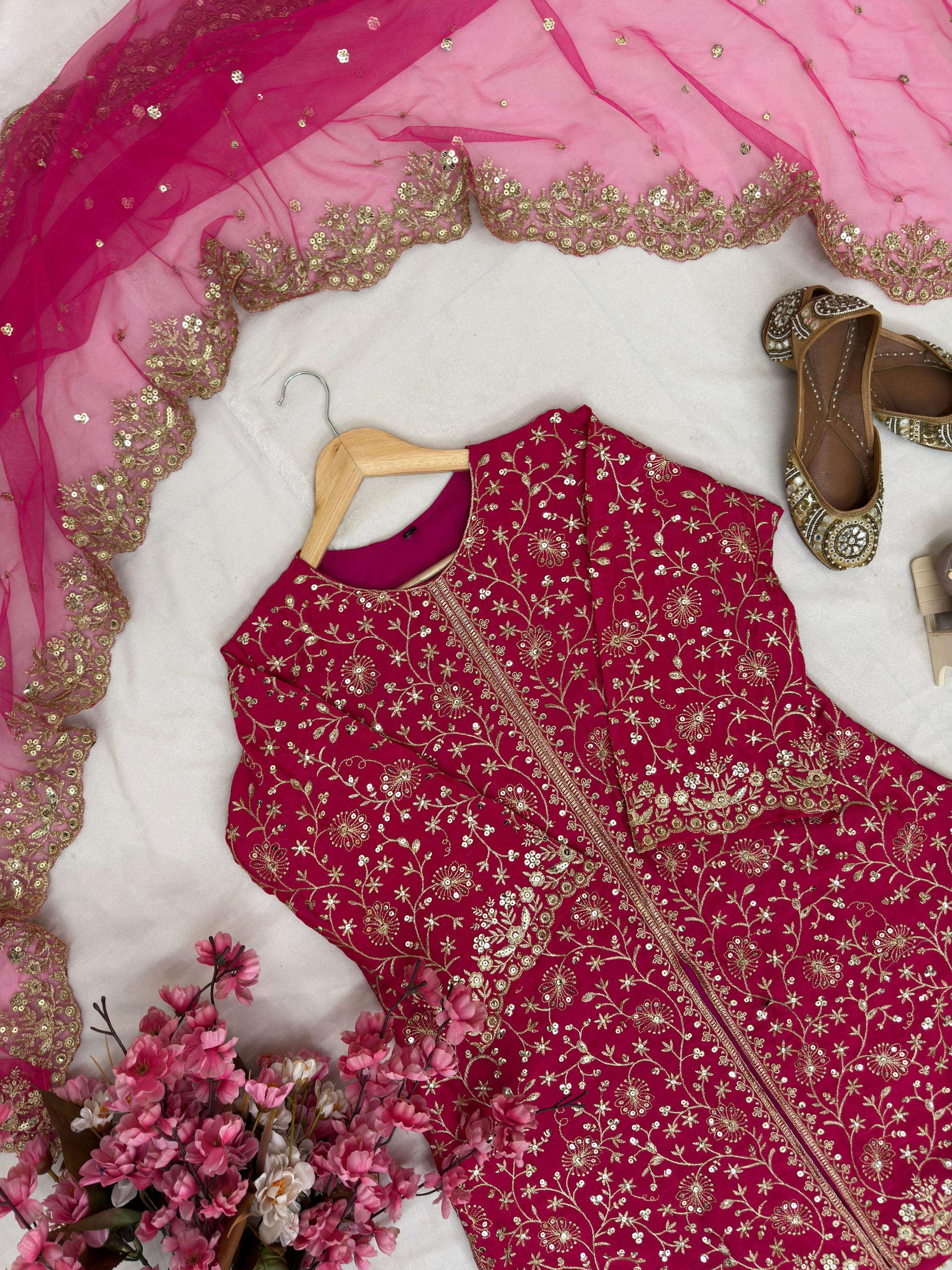 Work : Both Side Beautiful 5mm sequins & zari embroidery work with fancy Handwork lace
