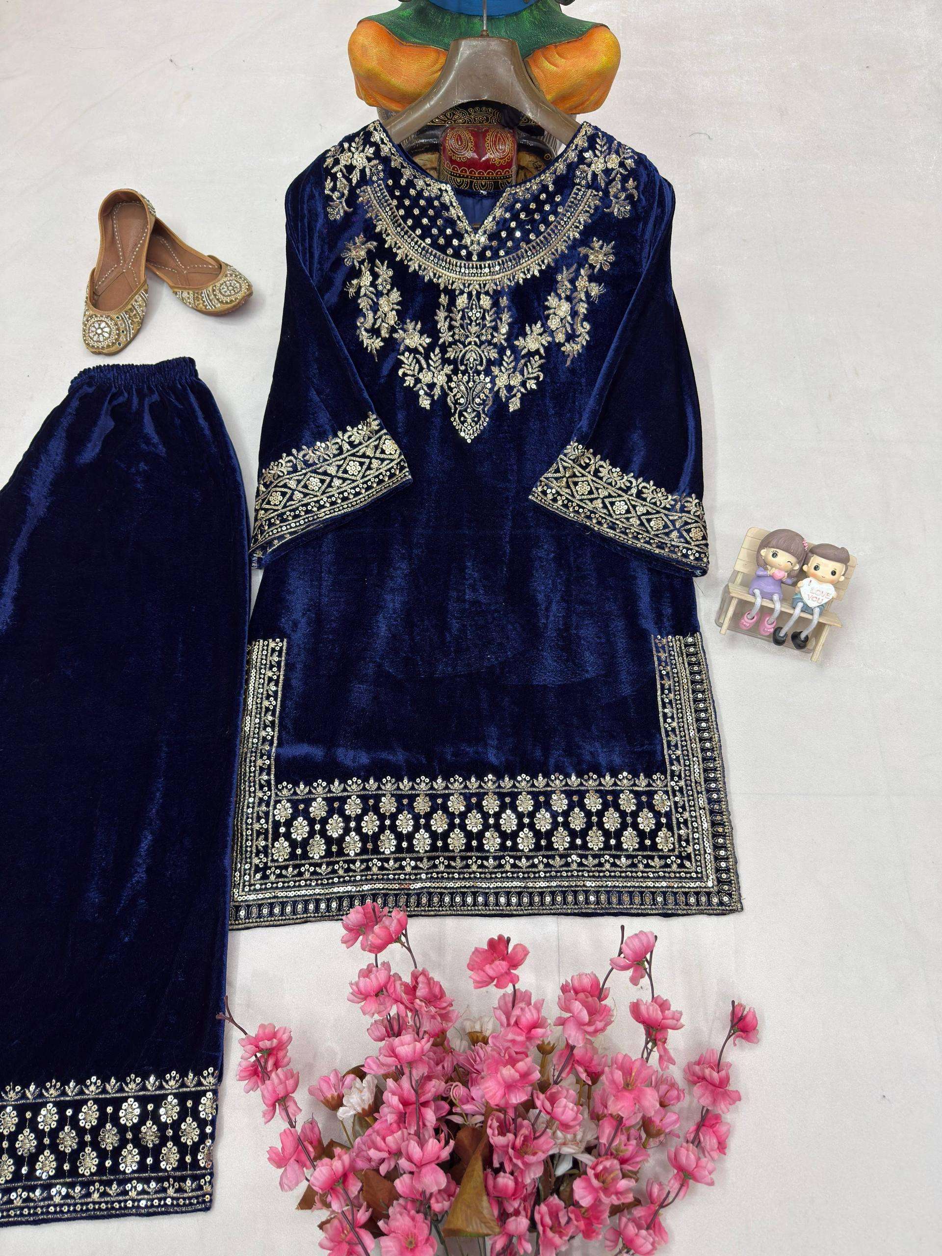 ENHANCE THE BEAUTY OF YOUR WARDROBE WITH THIS NEWLY LAUNCHED VELVET KURTI-PLAZZO SET