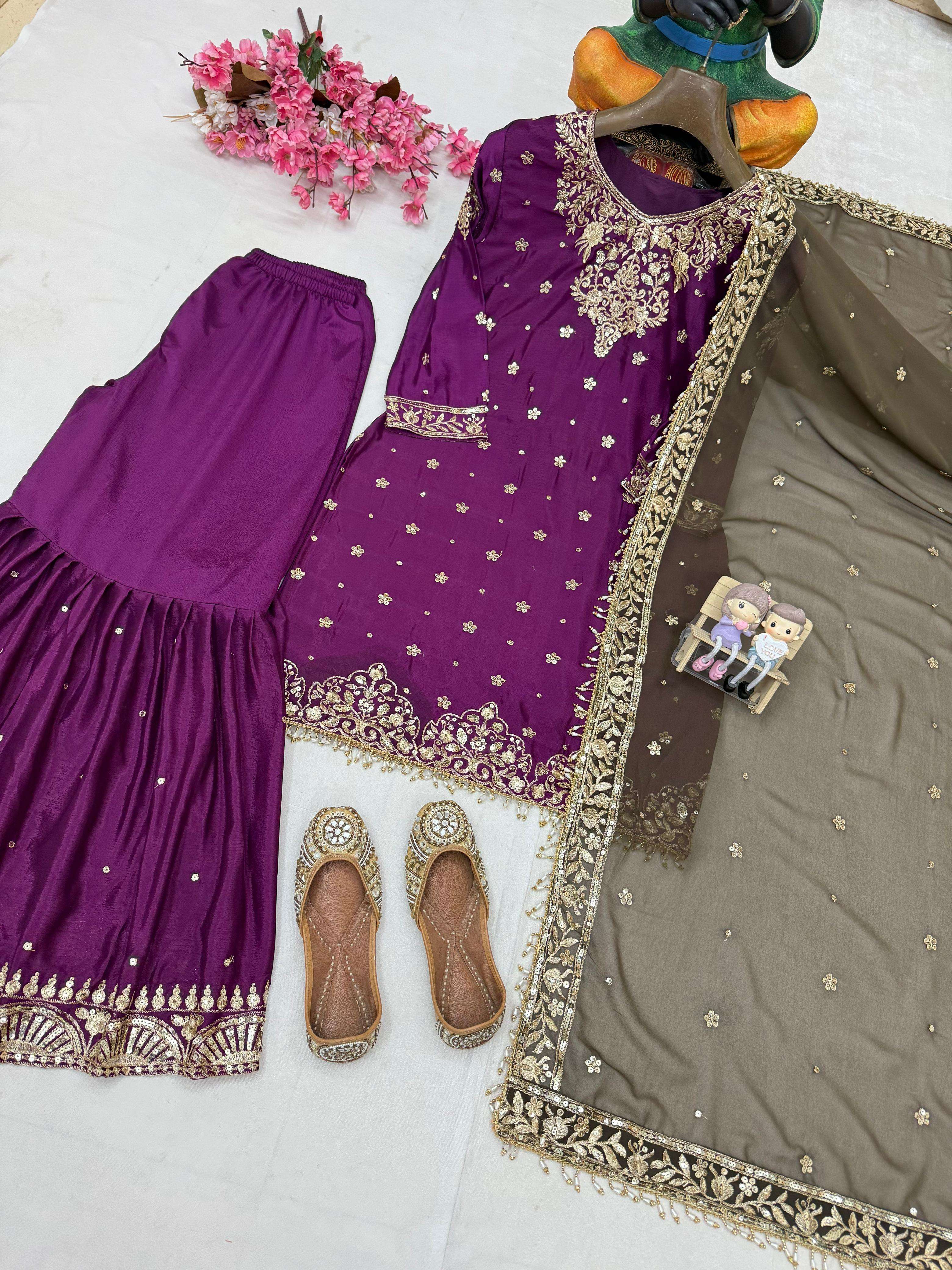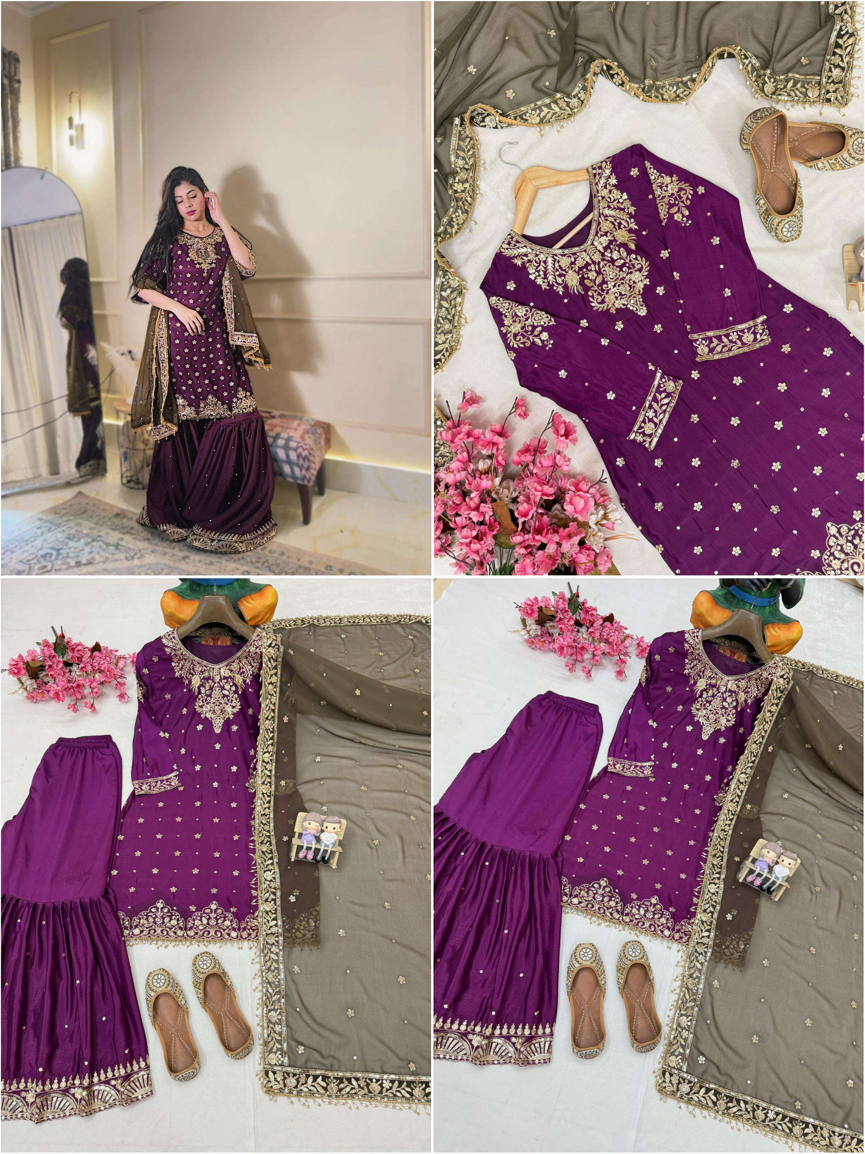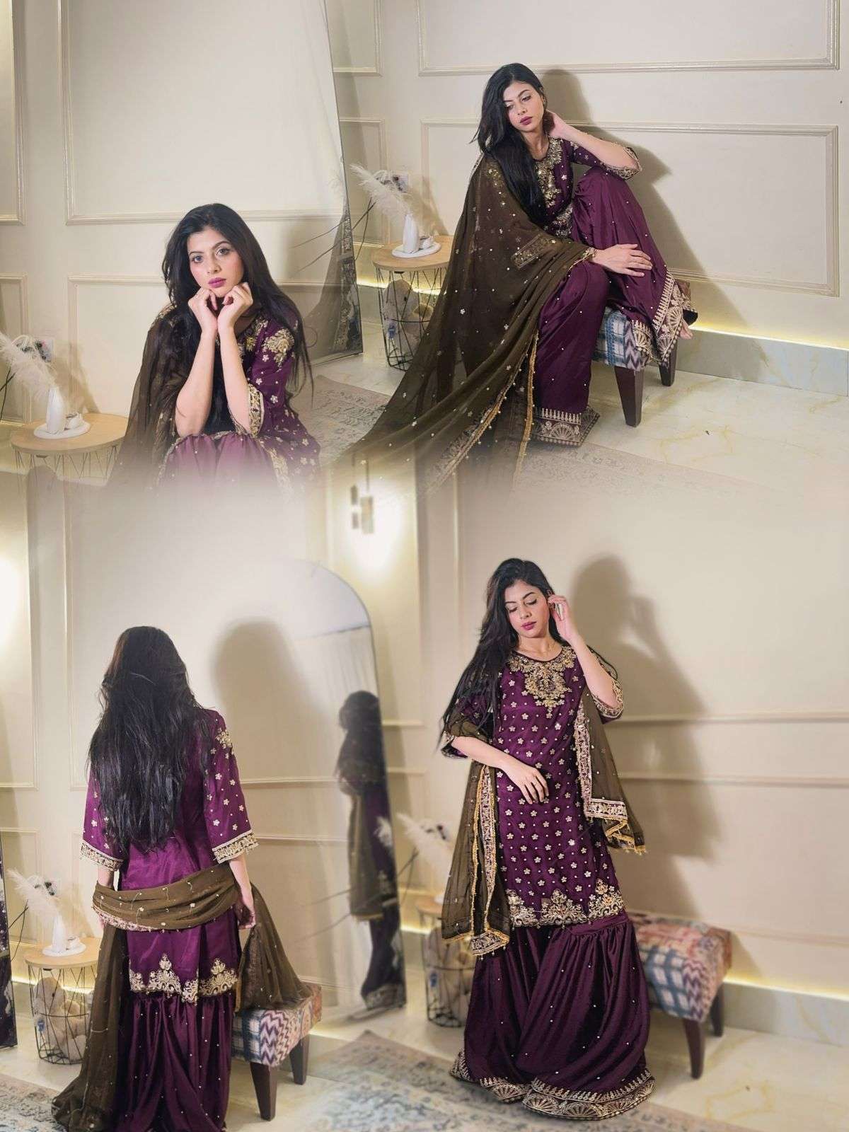 | Catalogue: | Shri Balaji Emporium LC 1439 Beautiful Chinon Silk Sharara Suit |