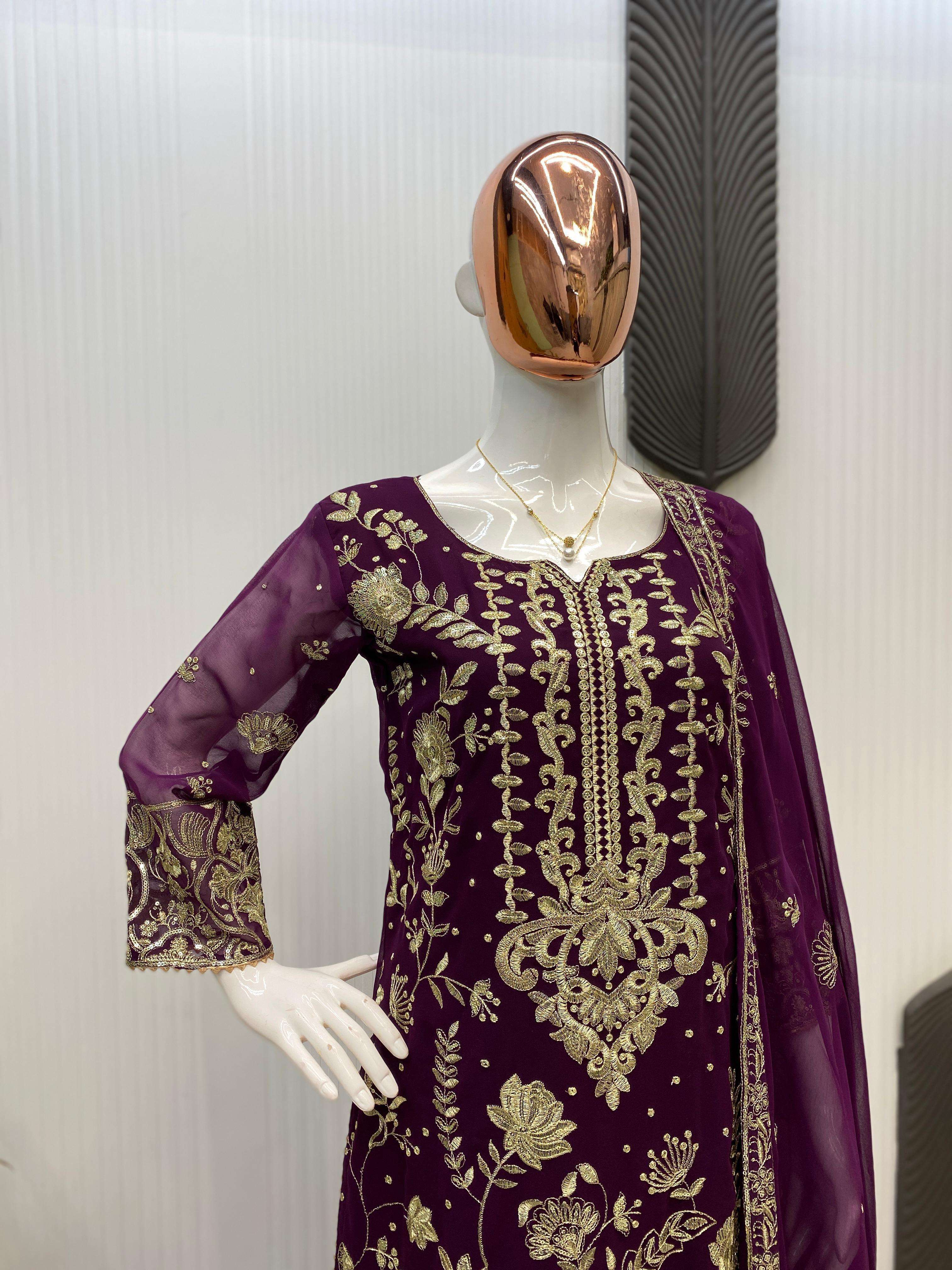 •GEORGETTE WITH SEQUENCE EMBROIDERY WORK