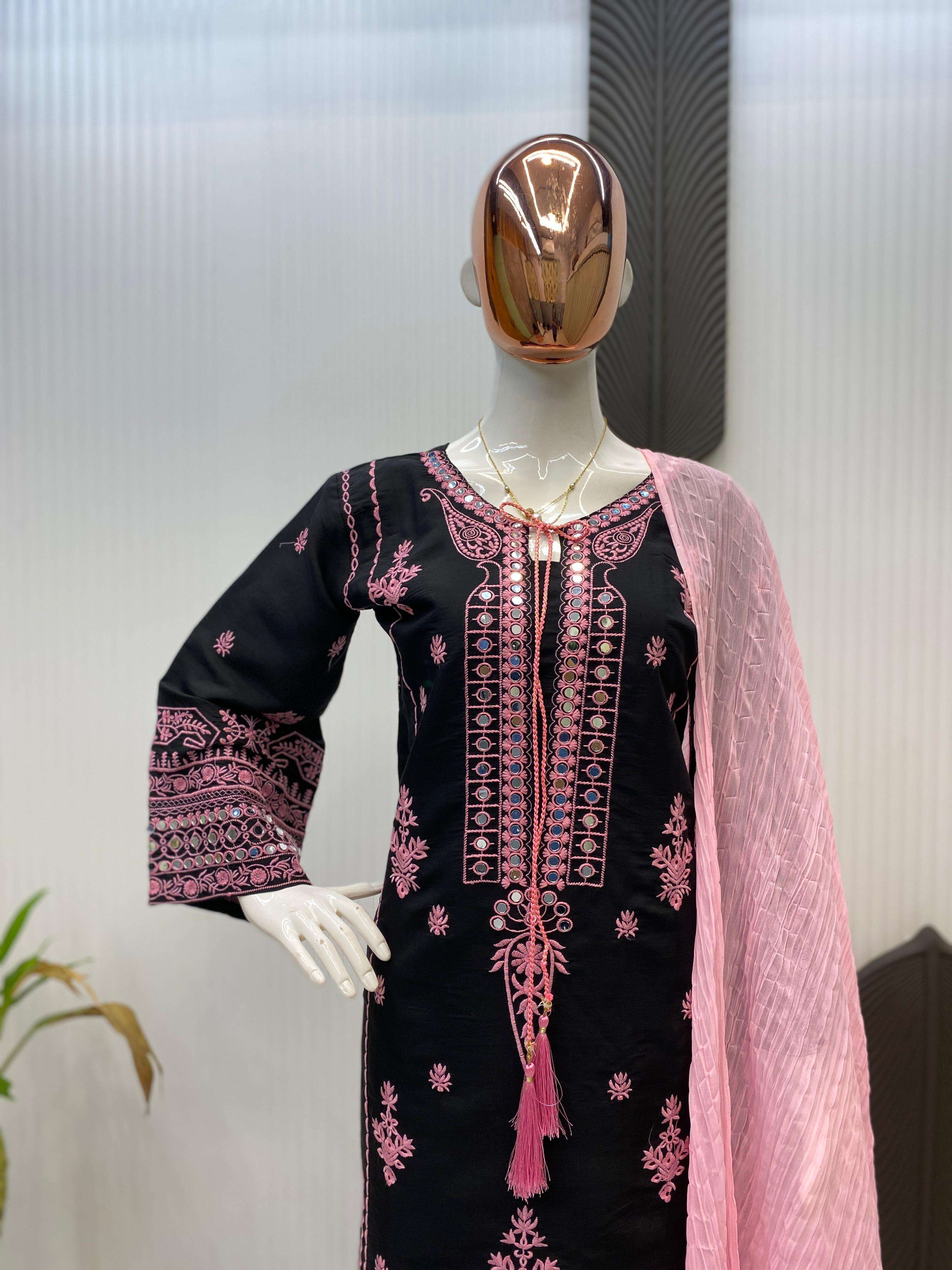 •EMBROIDERED BORDER WITH REAL MIRROR WORK
