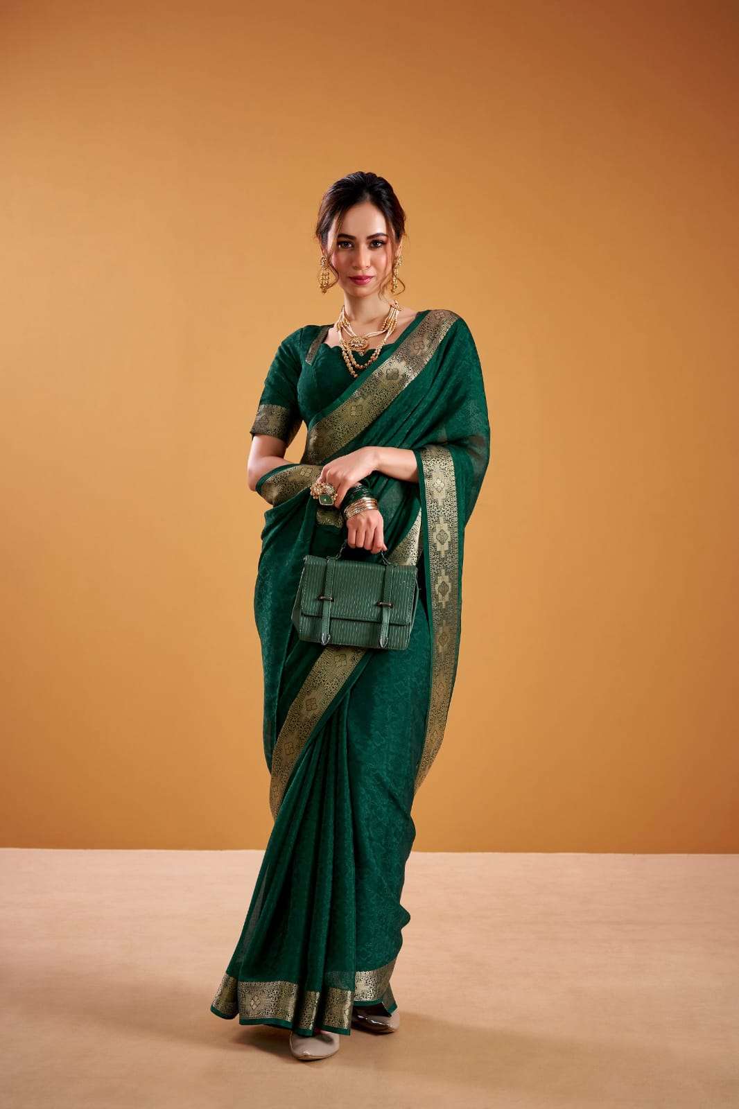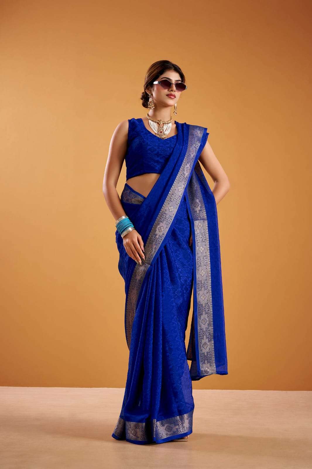 This poly shimmer saree with exquisite weaving border is your perfect pick for festive vibes, evening parties, or special occasions