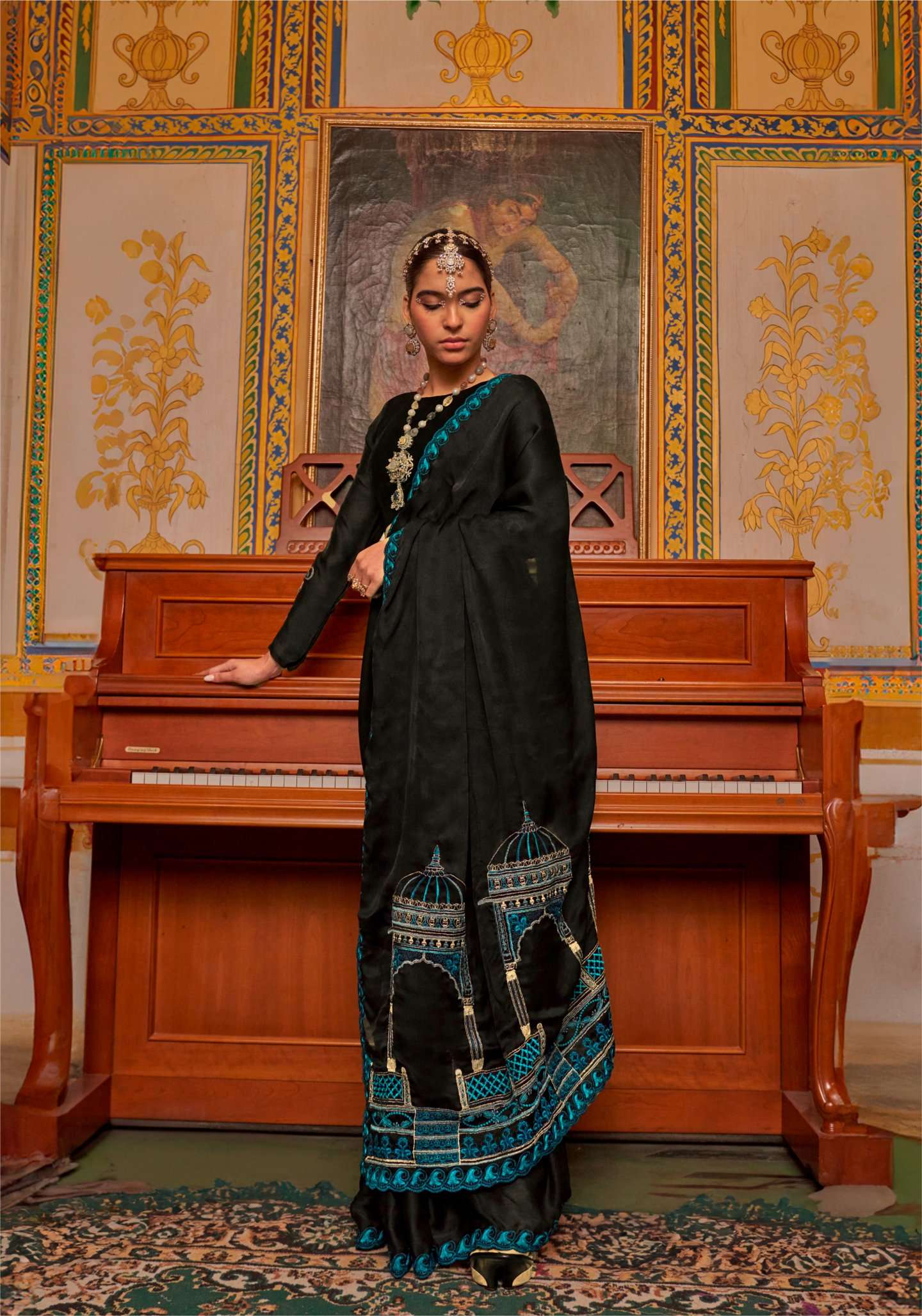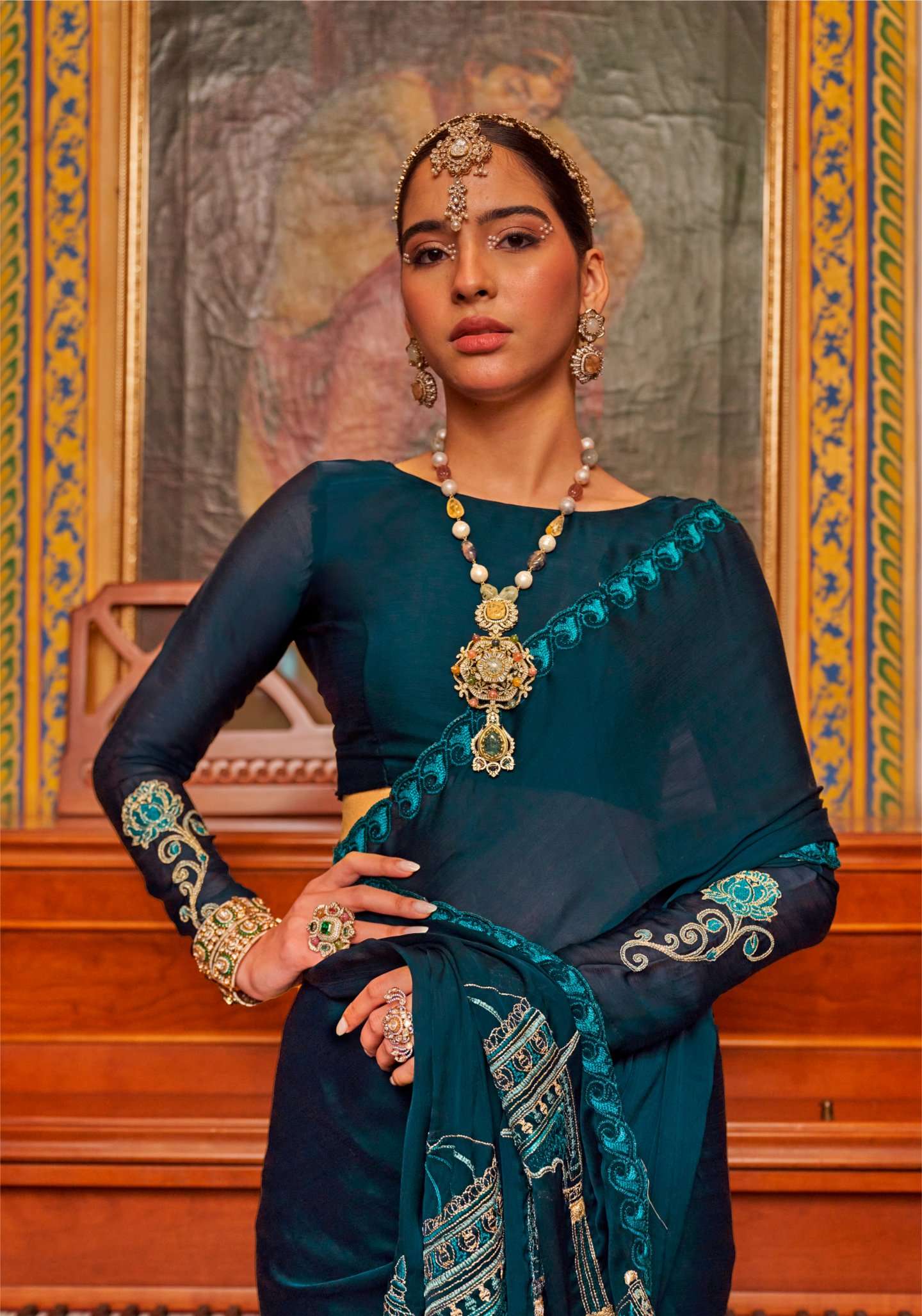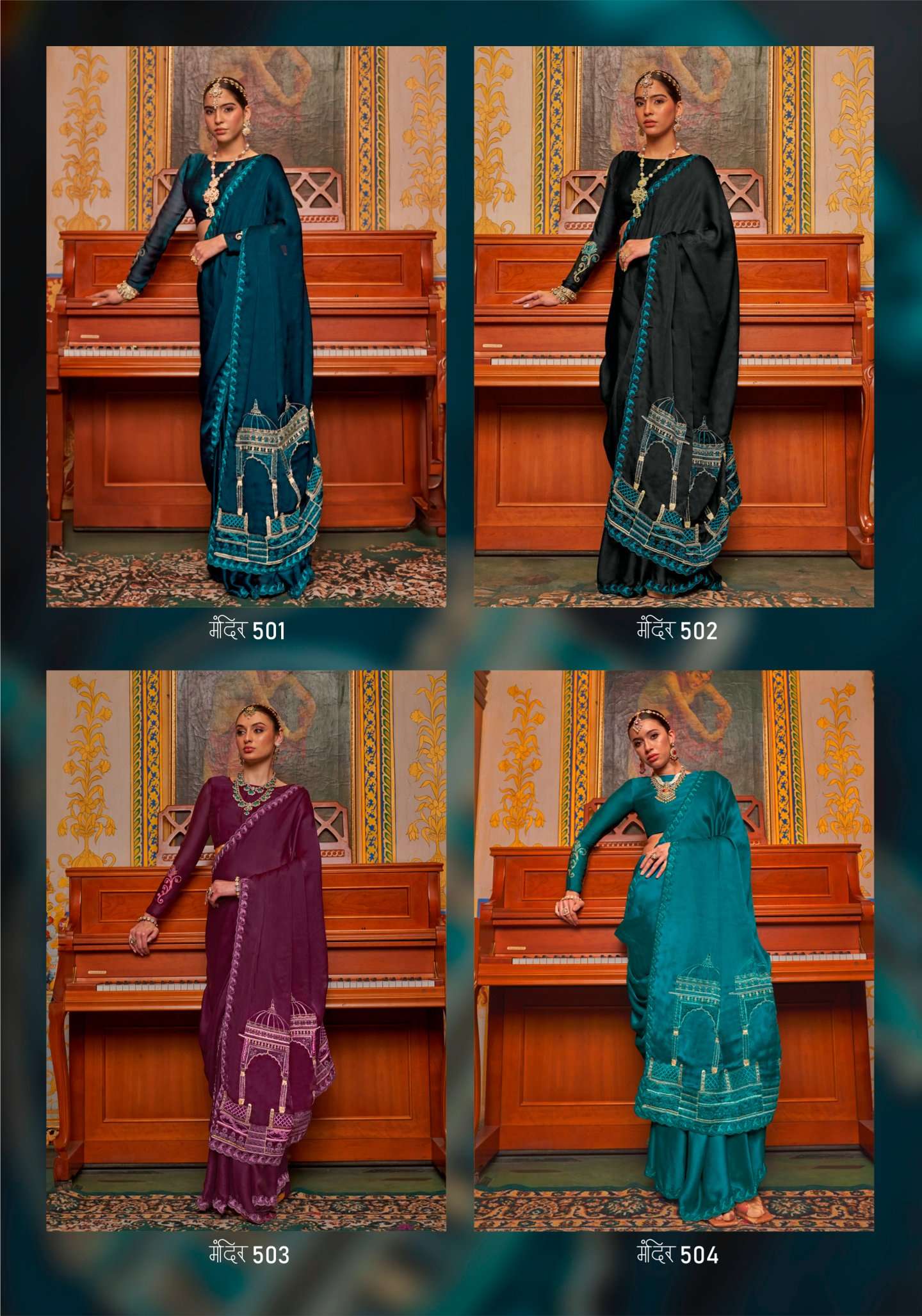 | Catalogue: | Shri Balaji Emporium MANDIR Satin chiffon fabric multi thread embroidered SAREE Collection |