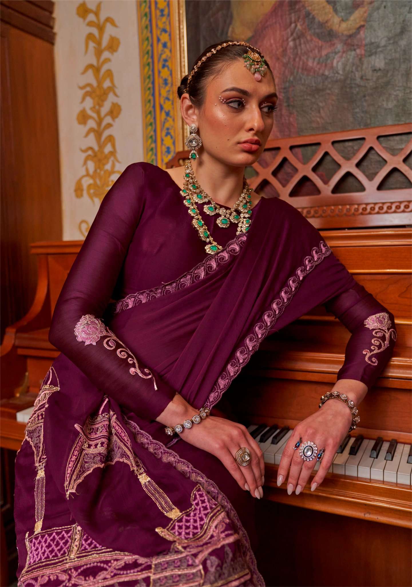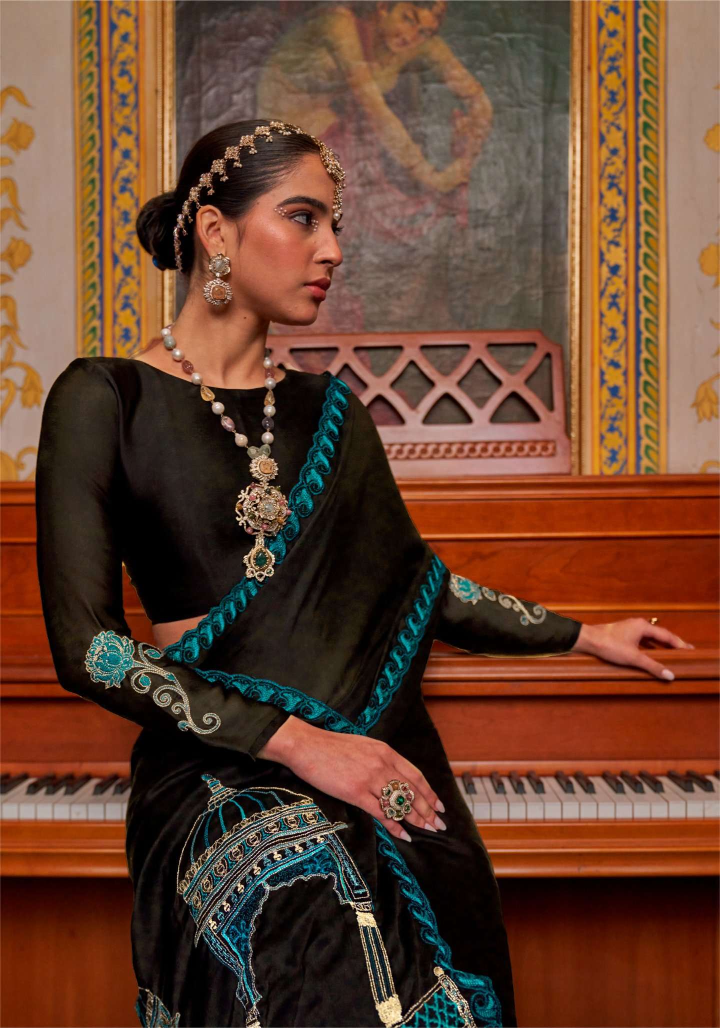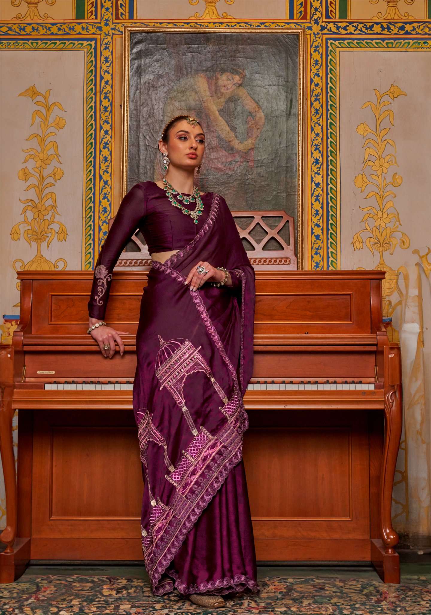 | Catalogue: | Shri Balaji Emporium MANDIR Satin chiffon fabric multi thread embroidered SAREE Collection |